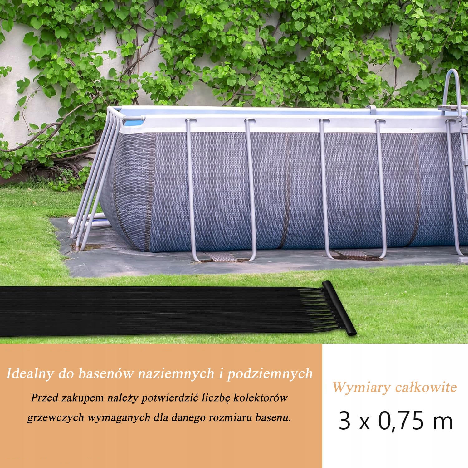 Kolektor solarny ogrzewanie basenu, 300 x 75 cm, ogrzewanie basenu 12000 l