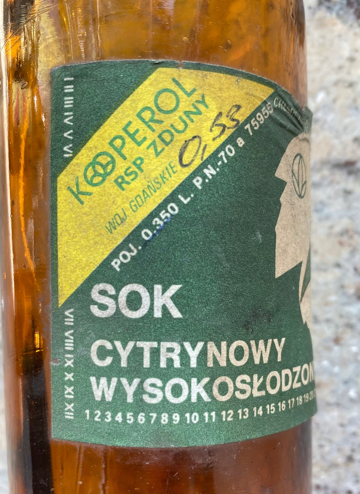 Коллекционер бутылка лимонный сок Cooperol RSP Zduny 1986 PRL