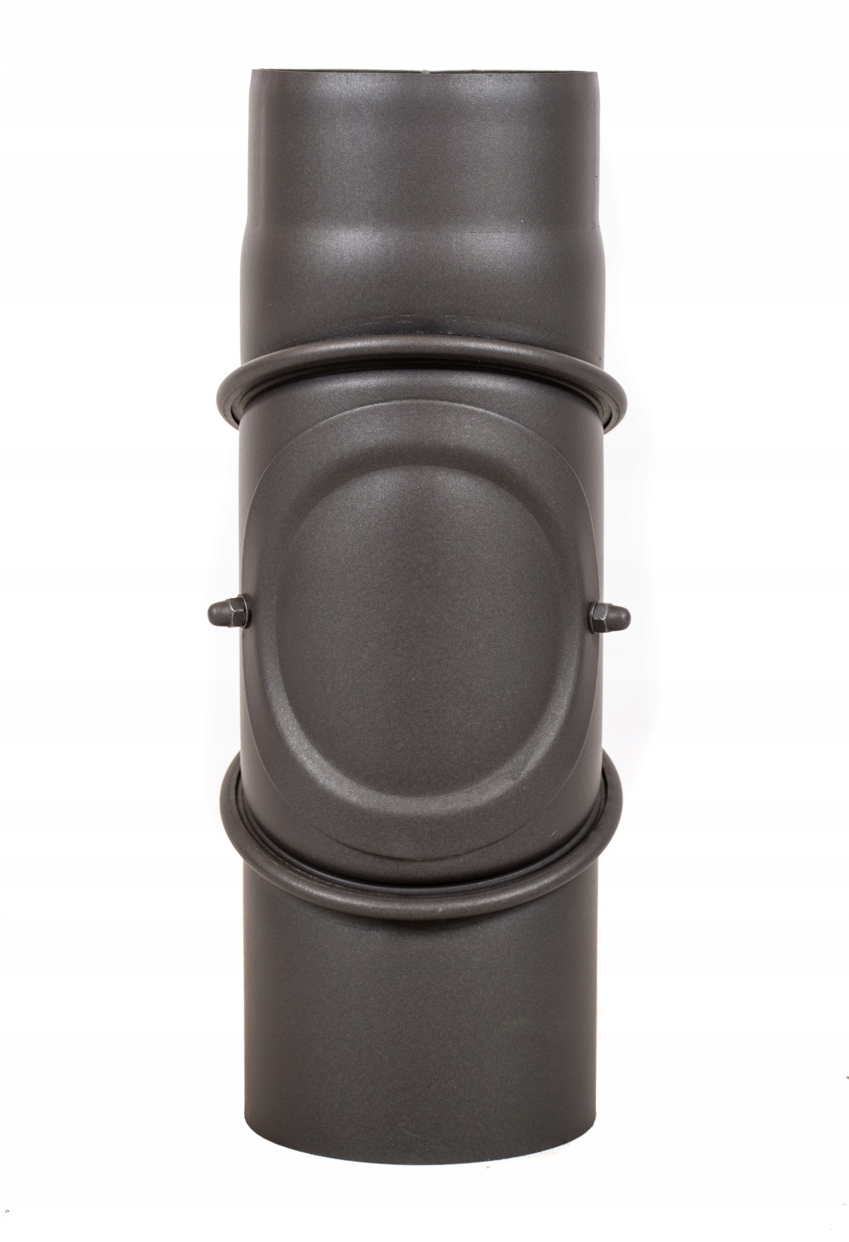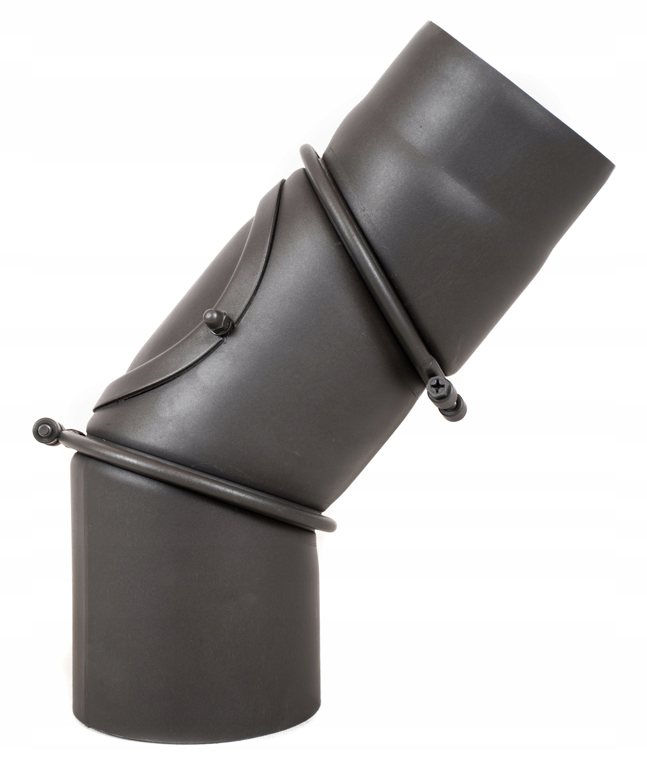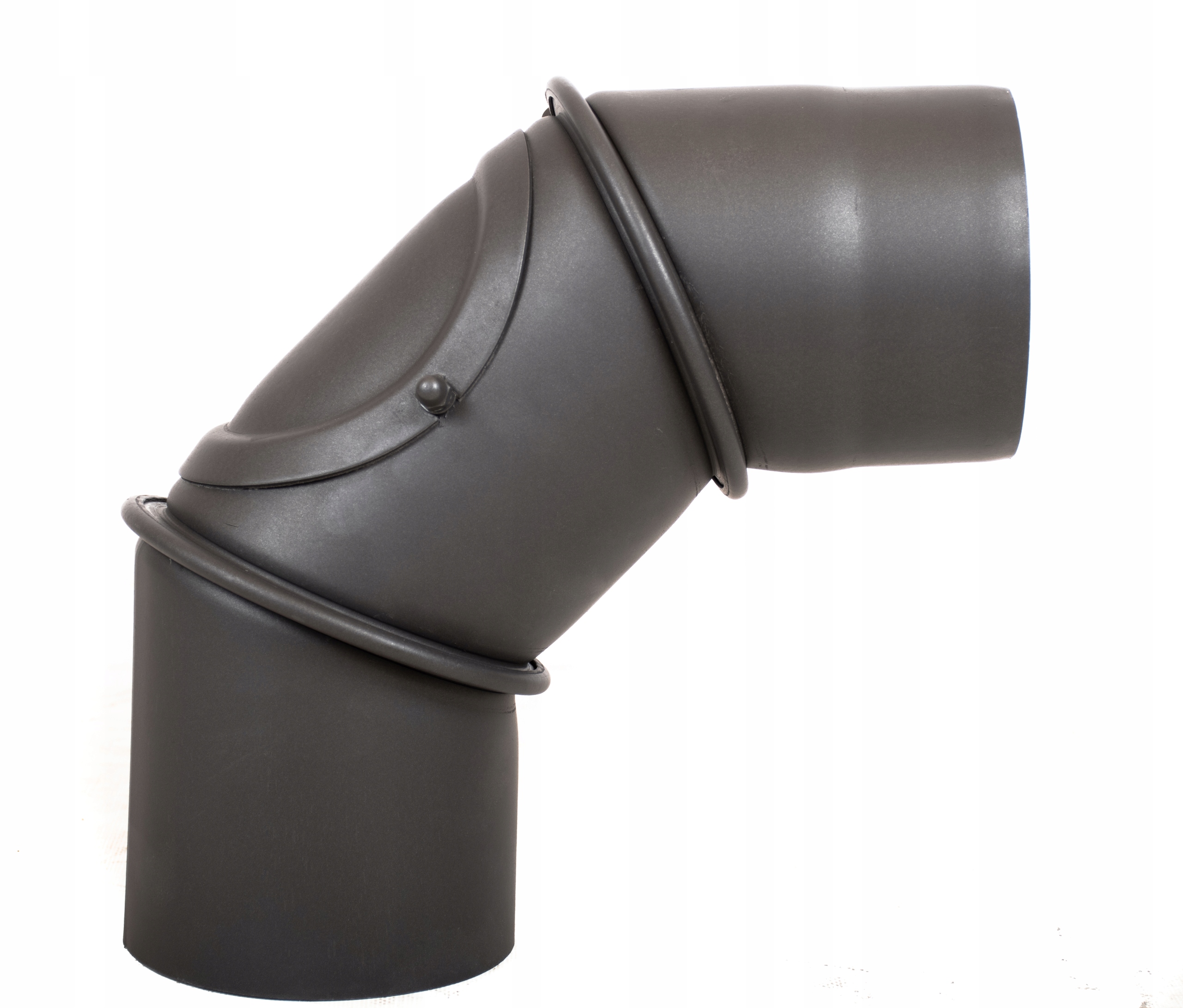 позволяет выполнить соединение под углом 90°. Благодаря использованию специальных зажимов колено плотно прилегает, а его регулировка осуществляется легко и точно. Колено имеет контрольный элемент, с помощью которого можно осуществлять периодический осмотр и очистку. Колено предназначено для отвода выхлопных газов от печей, каминных топок и других твердотопливных отопительных приборов.