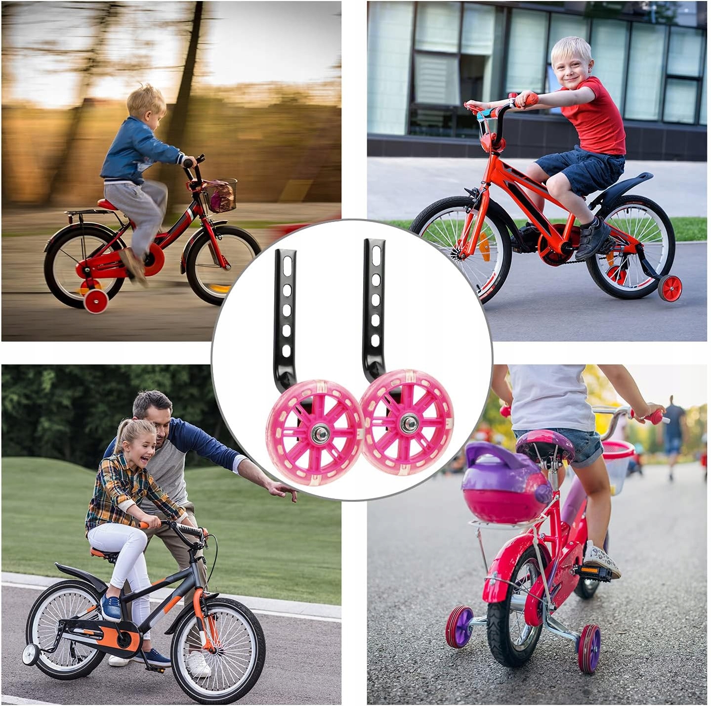- Идеальные велосипедные аксессуары для детских велосипедов, подходят новичкам и детям, которые боятся падения.
