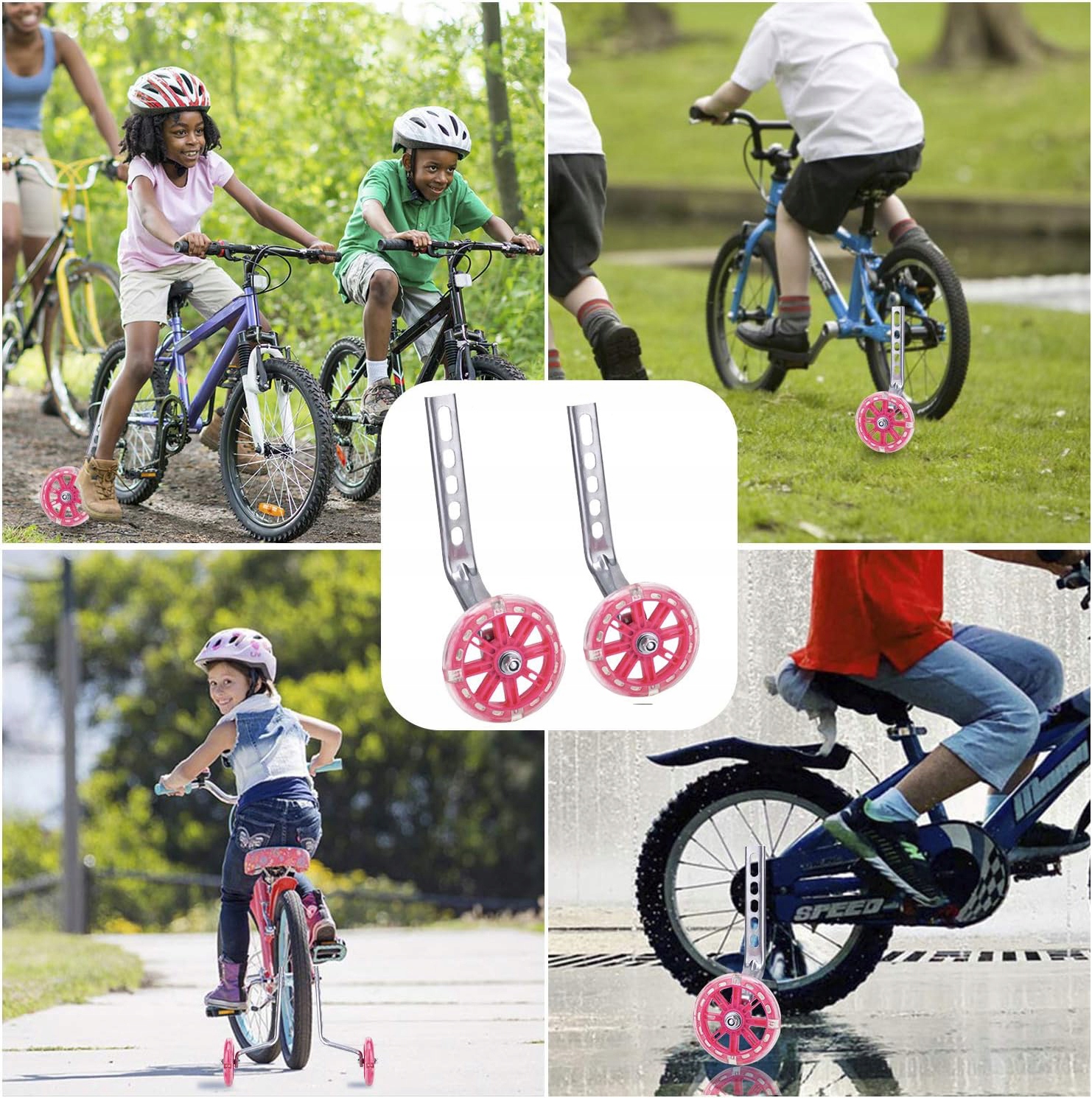 - Детские велосипеды, держите безопасность и уверенность вашего ребенка - эти удобные колеса для велосипедов с толщиной добавляют укрепляющий клип, чтобы построить твердую треугольную структуру. Это помогает студентам развить полезное чувство баланса на велосипеде. Избегайте детей, беспокоящихся о борьбе из -за езды на велосипеде. Колеса - толщина. Это обеспечивает большую безопасность и стабильность начинающих. Стальные стойки и твердые пластиковые колеса - высокая стабильность, очень твердая и долговечная