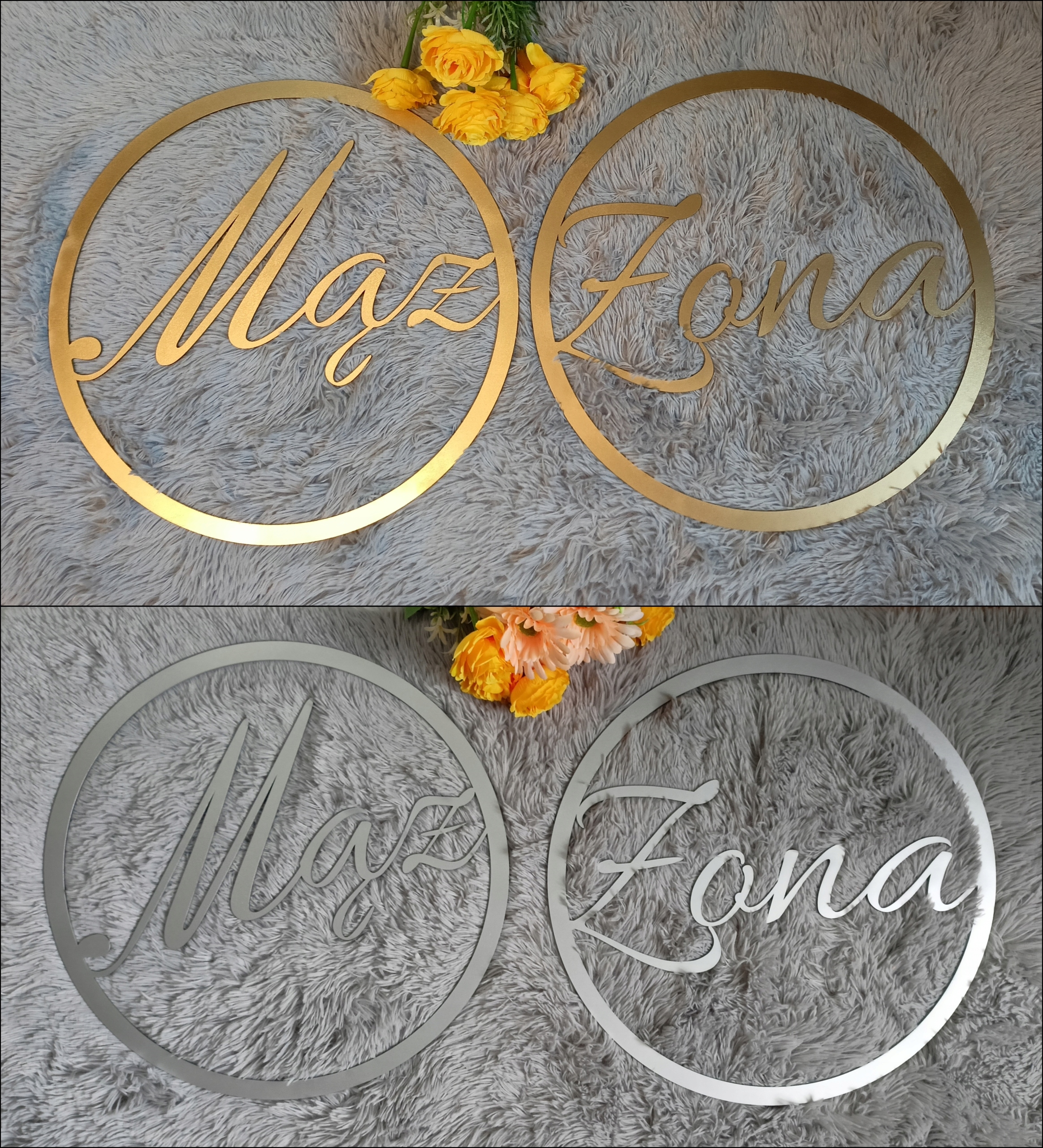 Можно сделать и другие персонализированные надписи, например, имена/фамилии невесты. и жених и т. д.