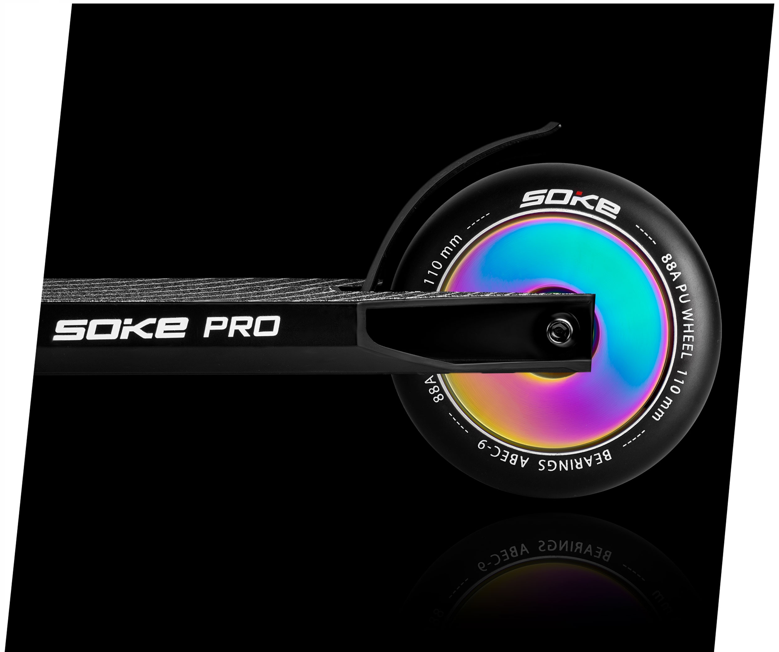 Колеса марки SOKE изготовлены из полиуретановой смеси твердостью 88А и имеют один из самых быстродействующих подшипников: ABEC 9. Они идеально подходят для твердых поверхностей. например асфальт.