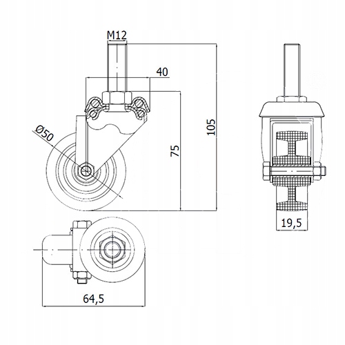 Мебельное колесо fi. 50 мм со штифтом