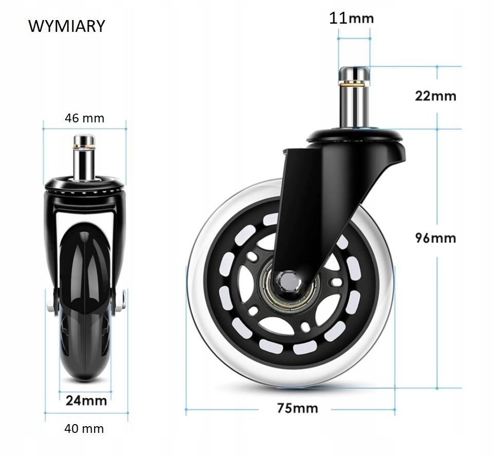 КОЛЕСА РЕЗИНОВЫЕ ДЛЯ СТУЛА FI 75 ММ - 5 ШТ