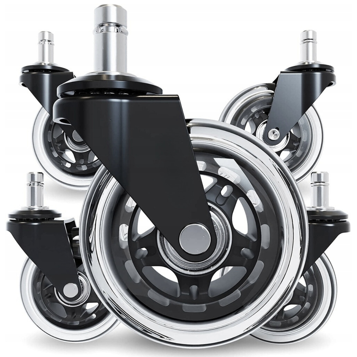 ▶ Колеса были разработаны с учетом максимально возможной универсальности. Благодаря этому мы получили модель, подходящую для офисных стульев, вращающихся стульев, игровых стульев, табуретов, мебели и т. д.