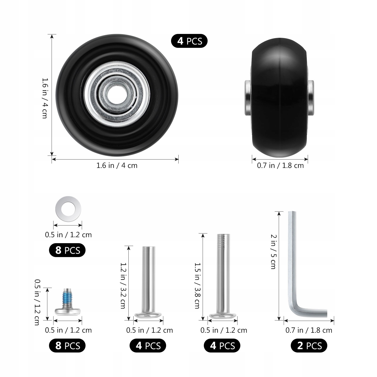 ✅Этот продукт представляет собой профессиональный комплект для замены багажных колес, изготовленный из безопасных и прочных материалов, обладающий хорошей износостойкостью, он может прослужить вам долгое время и легко заменить старые багажные колеса. Полный сменный комплект удобен для легкой установки.