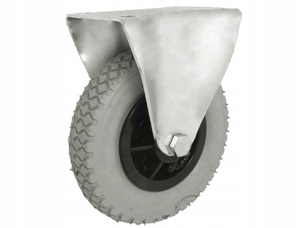 Высококачественное пневматическое колесо облегчает транспортировку по неровным поверхностям, прекрасно гасит вибрации и подходит для многих применений. Колесо в стальном корпусе, установленное на втулке, крепится с помощью винта и гайки.
