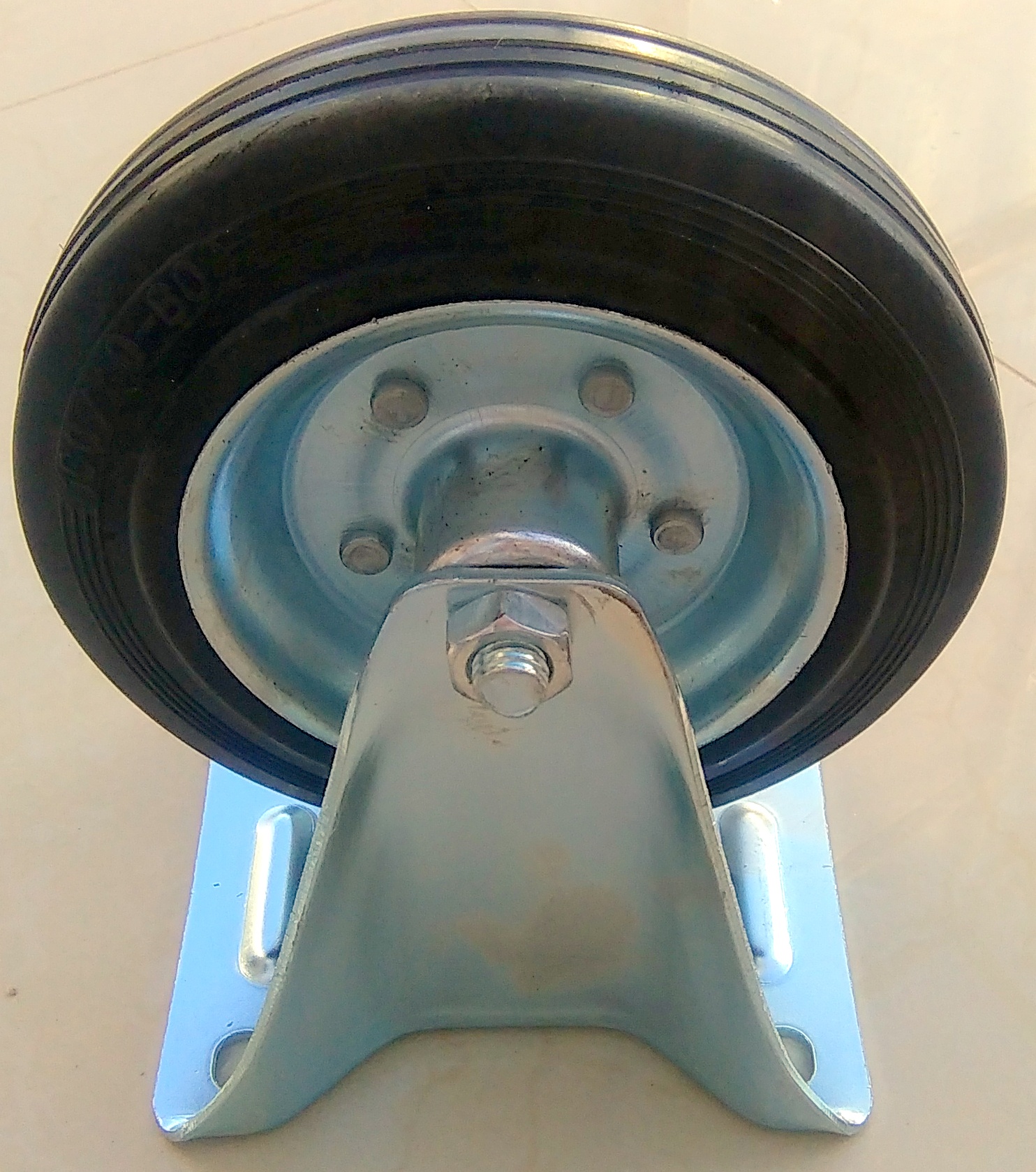 Колеса, прикрепленные к SO -SALLED Плитка представляет собой комбинацию вилки из прессованного стального листа и колеса со стальным узлом и полной черной резинкой. Голова кузницы удваивается и защищена от грязи специальным пылевым уплотнением. Все металлические компоненты набора покрыты антикоррозивным хромическим покрытием. Тормоз блокирует колесо и голову