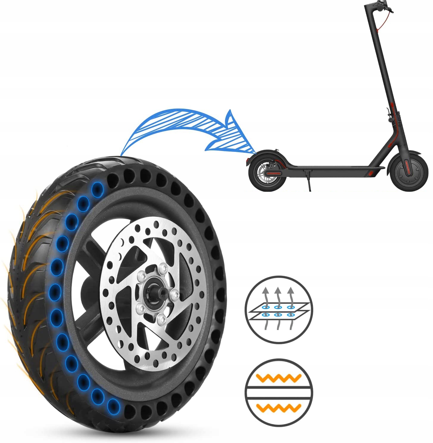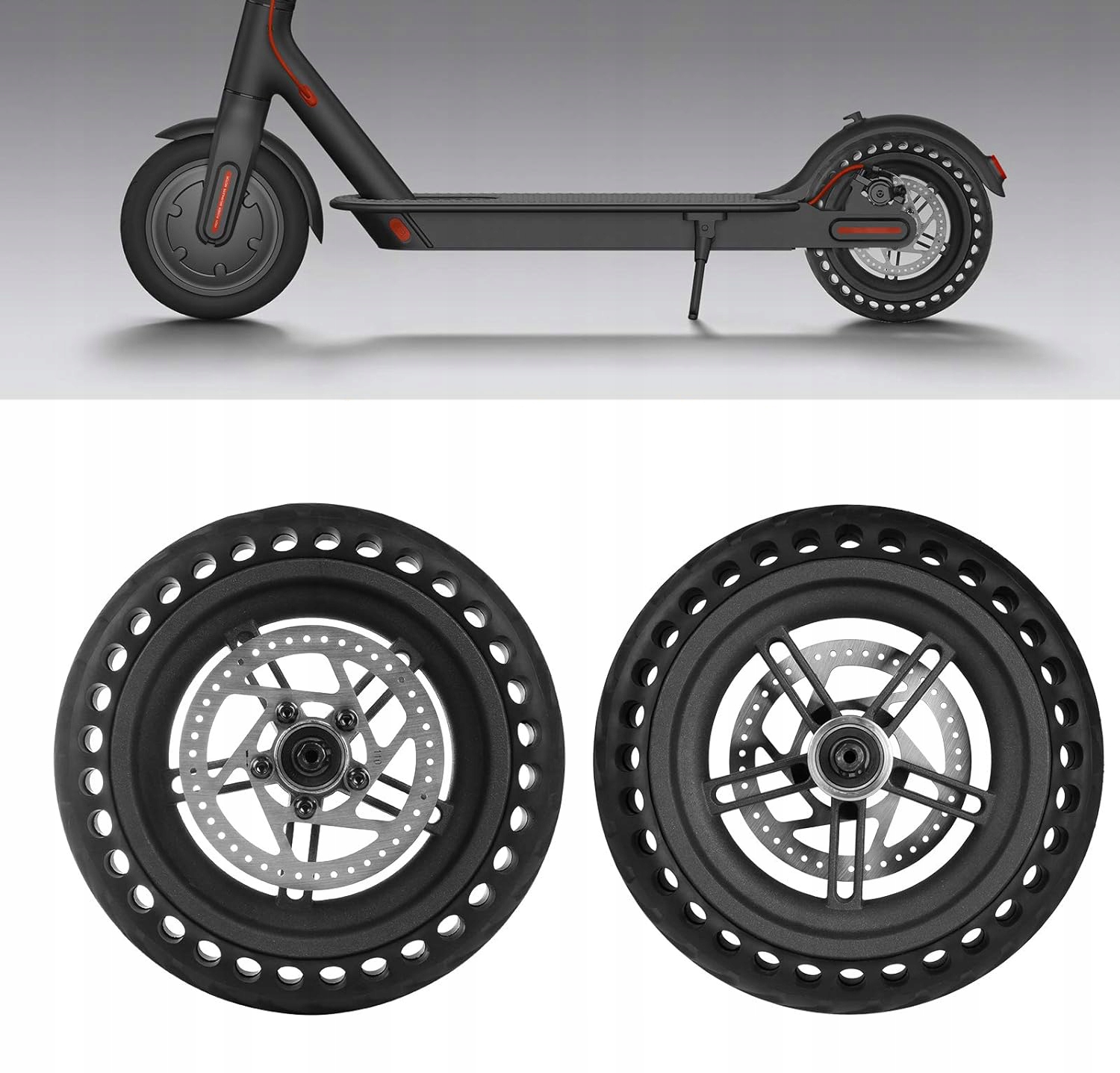 🛴🛴【Honeycomb Tire】 Прочное и устойчивое к проколам безопасное ступичное колесо из алюминия и прочной, износостойкой резиновой шины высокой плотности. Ячеистая шина поглощает удары и сохраняет комфорт камерного колеса. Поставляется с установленным тормозным диском.
