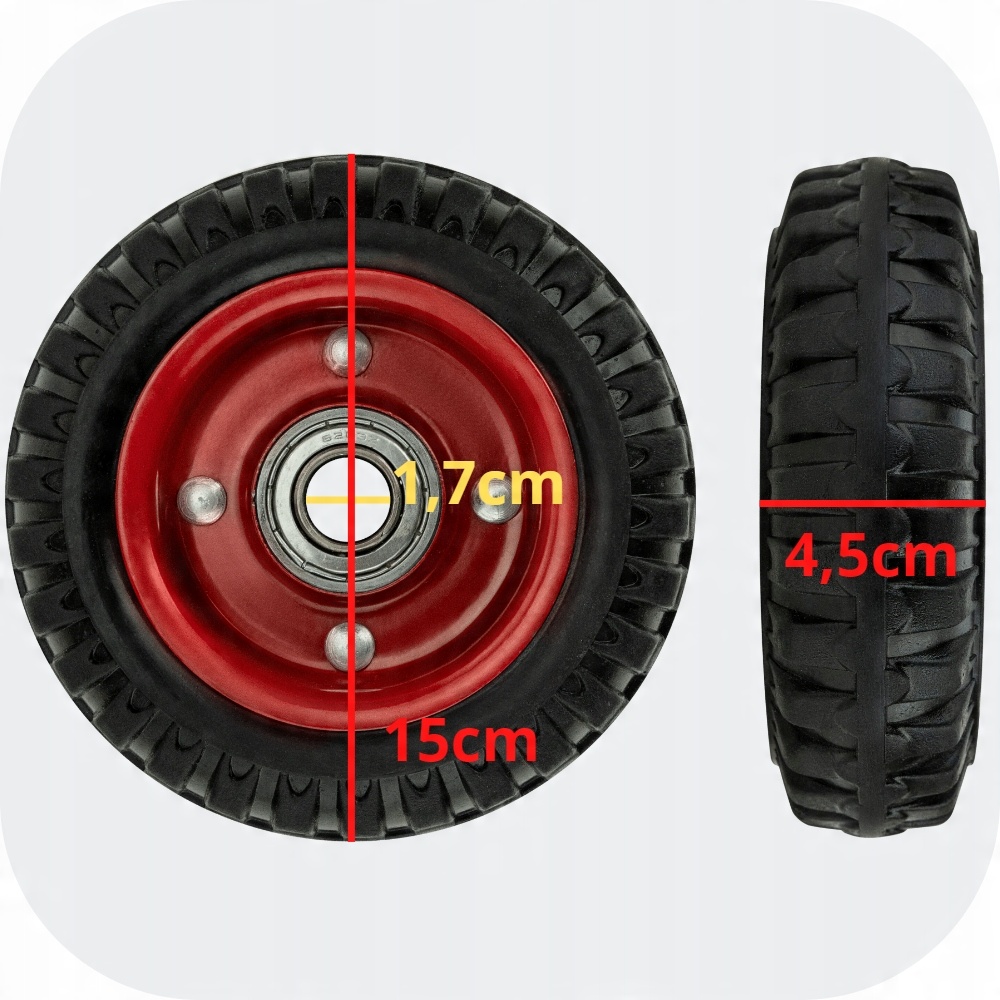 - Размер колес подходит для строительных, транспортных и садовых тележек.