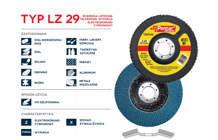 Круг пластинчатый, лепестковый, дисковый, выпуклый, циркониевый электрокорунд ТИП LZ 29 предназначен для шлифования: