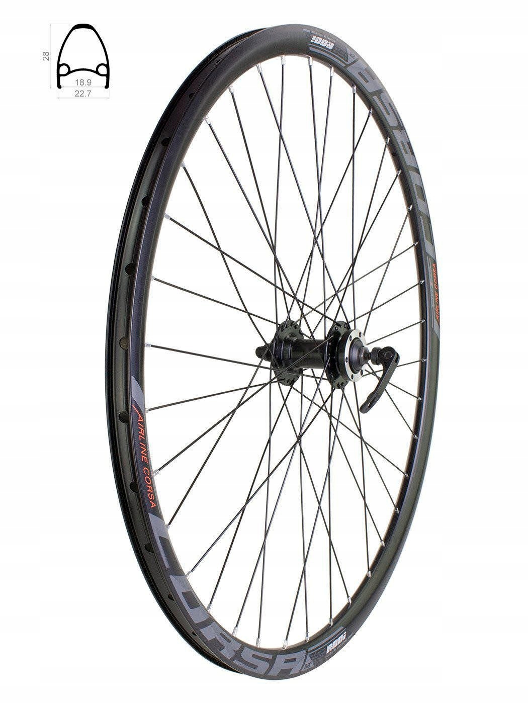 Переднее велосипедное колесо 28 дюймов для дискового тормоза. Алюминиевая ступица XMX-282QF на картриджных подшипниках с быстросъемным механизмом. Конический обод RODI AIRLINE CORSA.