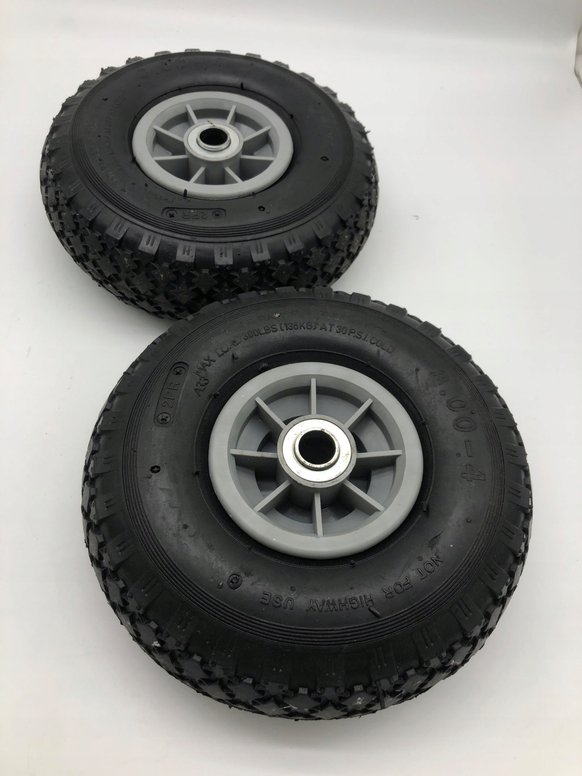 Купите комплект из двух прочных запасных колес для вашей транспортной тележки. Они идеально подходят для различных применений, обеспечивают плавность хода и долговечность благодаря шинам PR на серых пластиковых дисках.