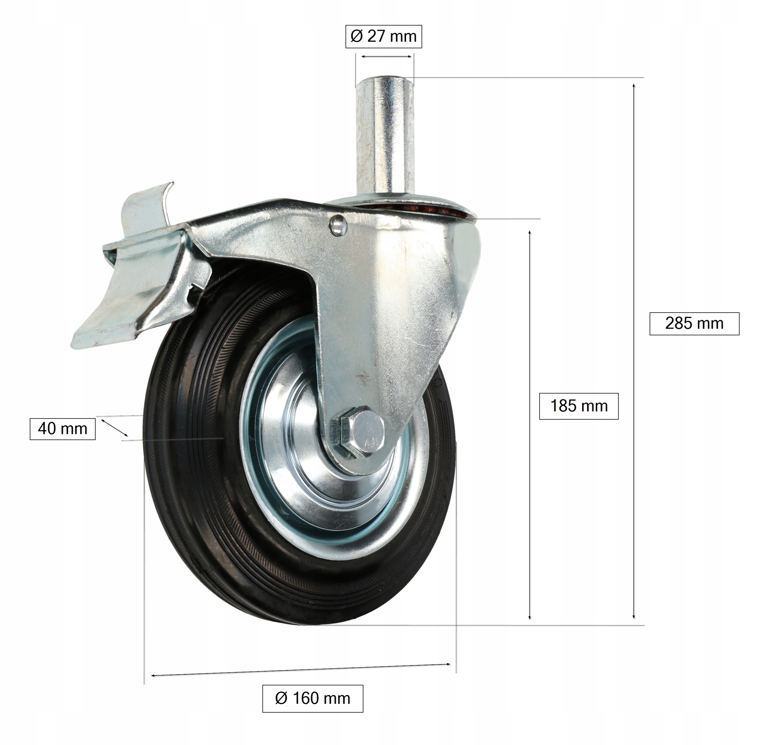 КОЛЕСО ДЛЯ ЛЕСОВ 160 ММ СО ШТИФТОМ И ТОРМОЗОМ