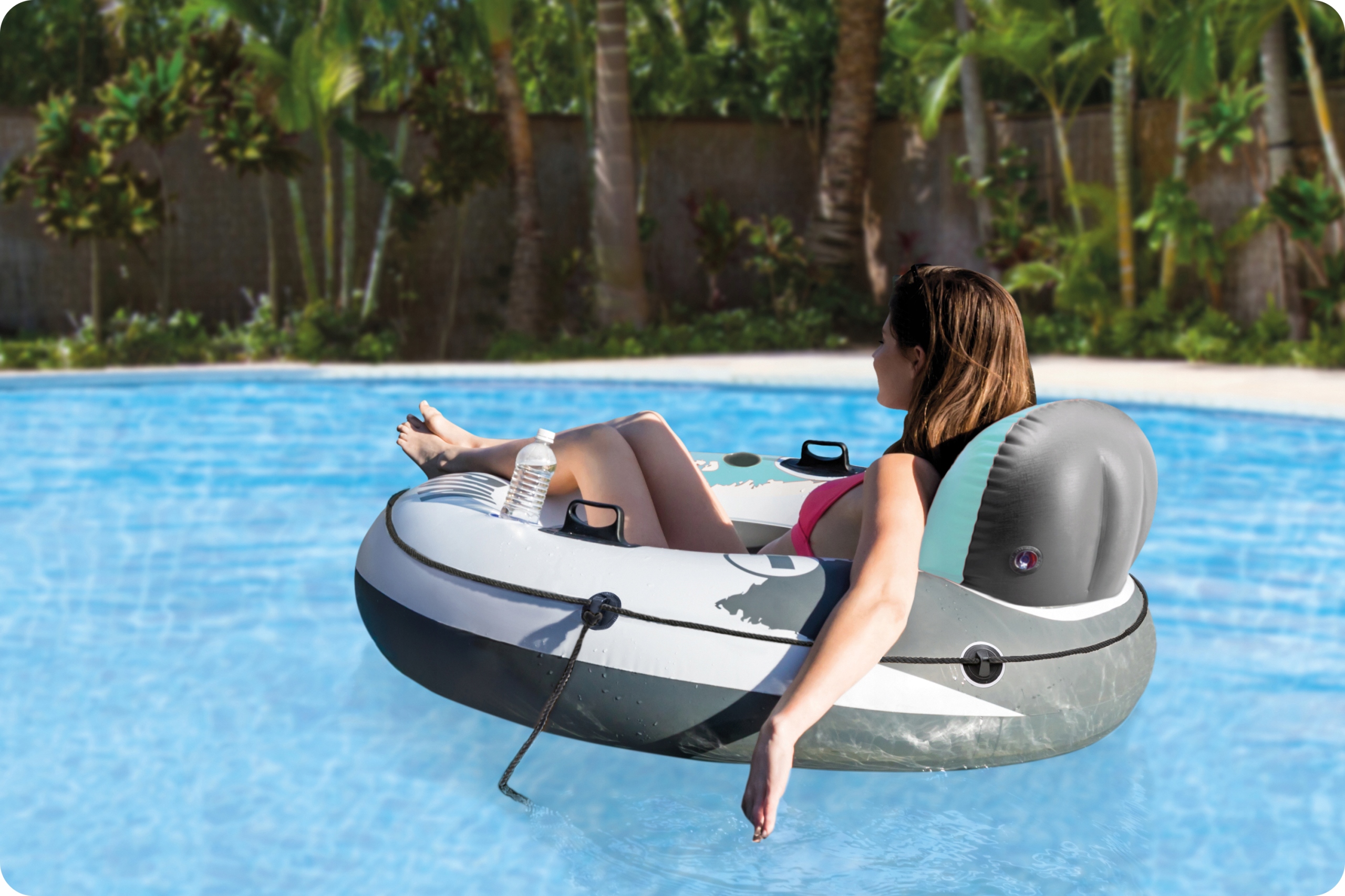 ☀ Удобно - теперь можно беззаботно проводить время в воде с любимым напитком - в кресло встроен подстаканник