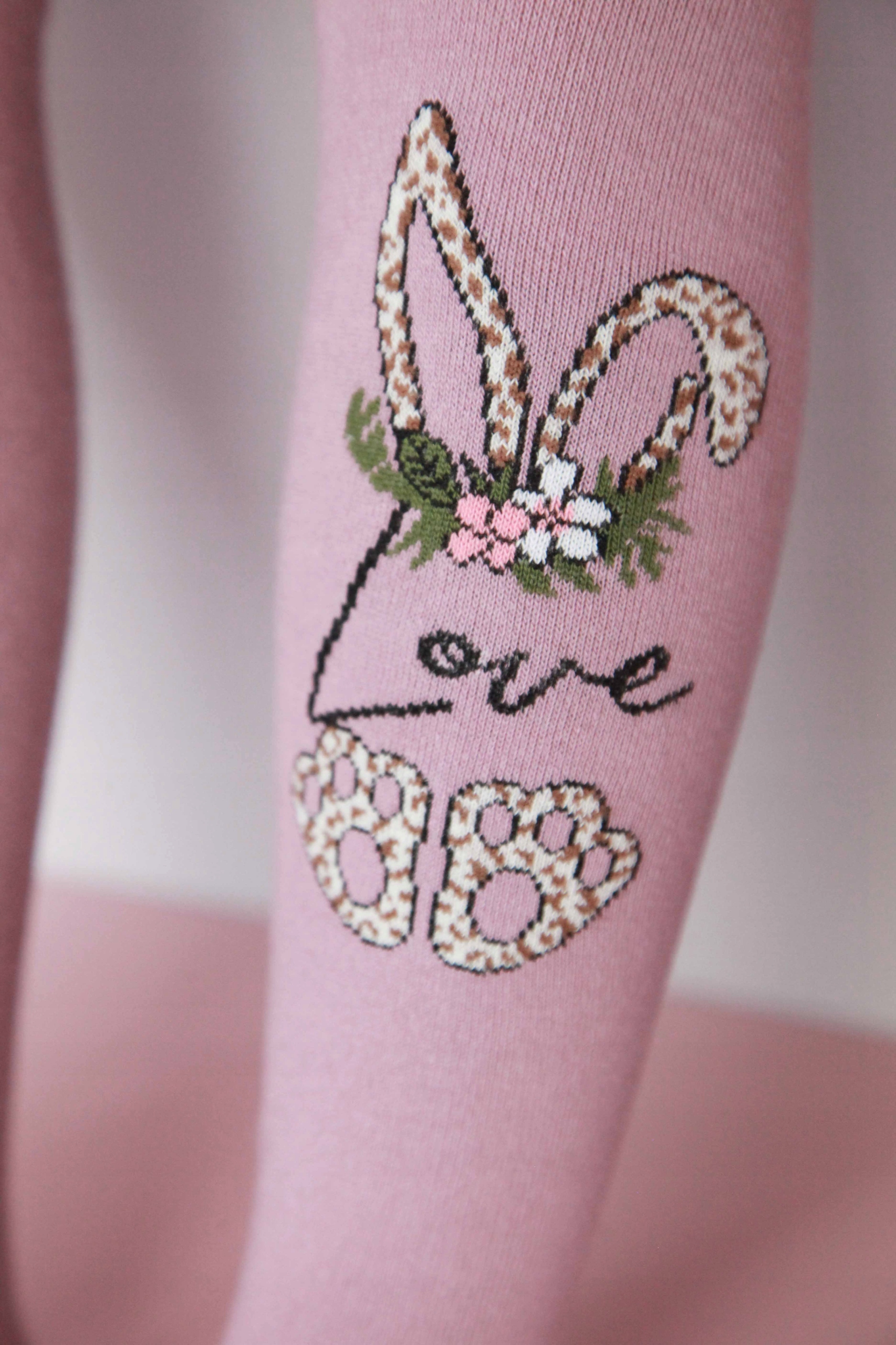 Симпатичные розовые колготки с мотивом кролика. Идеально подходит для всех любителей интересных узоров :)