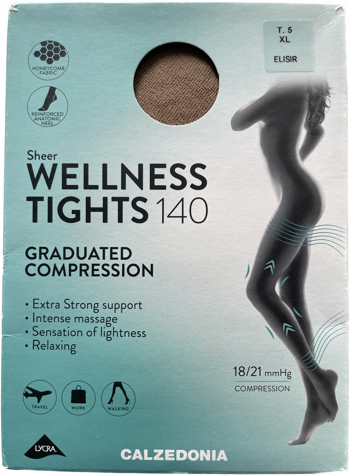 Колготки прозрачные 140 Denier Wellness с ступенчатой компрессией, внешний вид 40 ден и усиленный пояс, предназначенный для обеспечения сильного давления на ноги: интенсивный и успокаивающий массаж, который стимулирует кровообращение и делает ноги легкими и успокаивающими, с усиленными анатомическими пальцами и пяткой, которые удерживают колготки в правильная позиция. Сотовидная строчка, плоские швы и хлопковая ластовица.