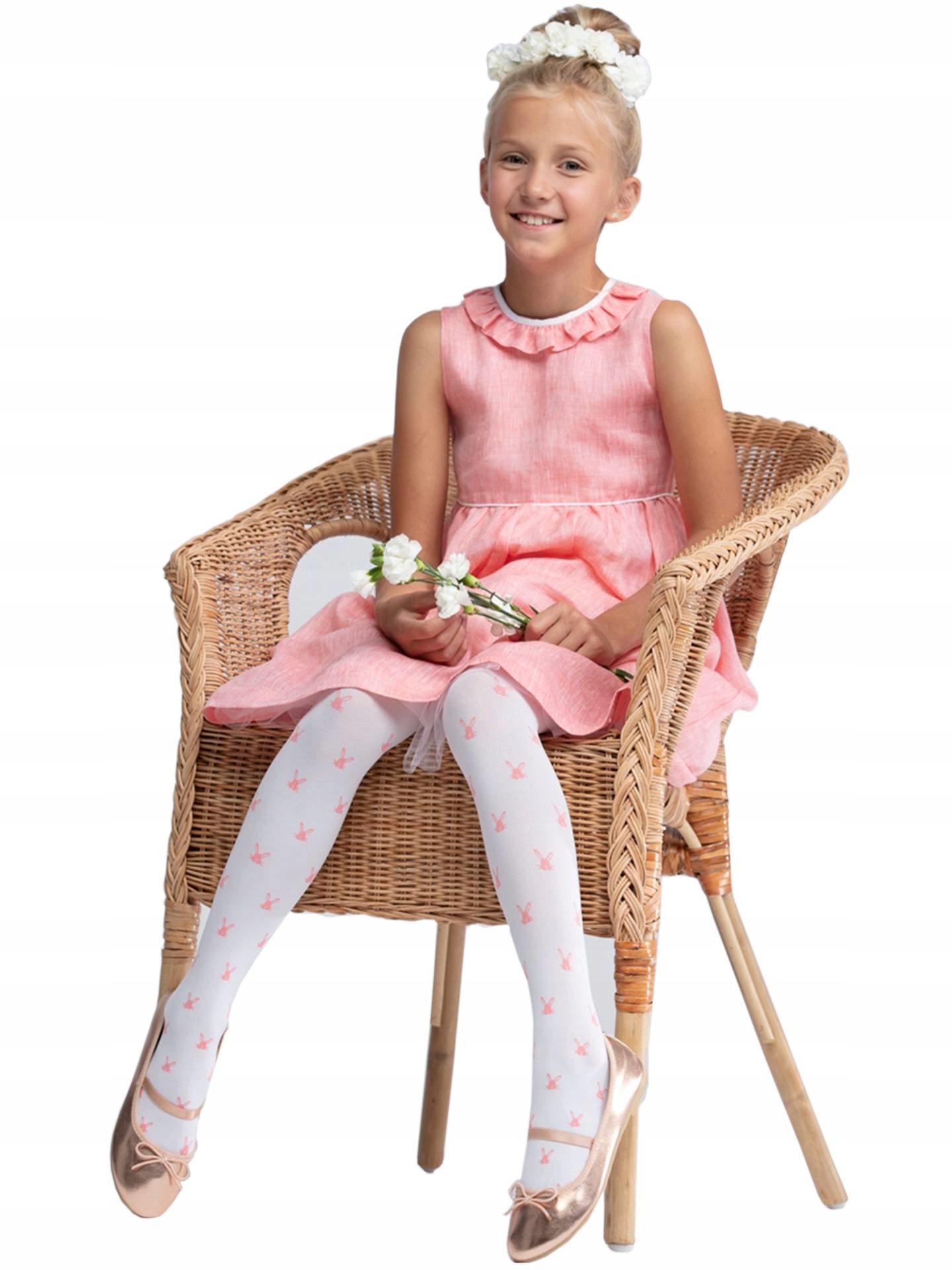 Детские колготки из микрофибры YoClub, белые зайчики, 40 DEN