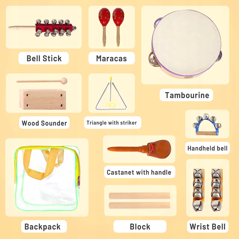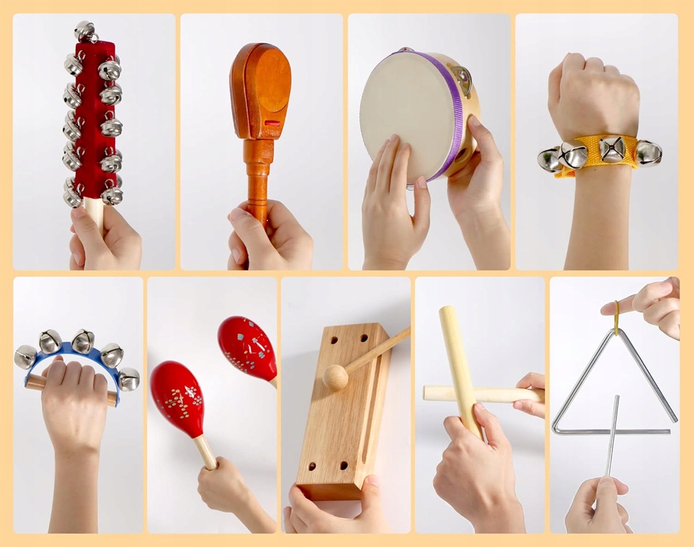 Полный музыкальный набор b>-Набор, когда-либо играющий LT-9 содержит 9 различных типов инструментов, в общей сложности 13 элементов, включая инструменты для встряхивания, удара и стука. Это все, что вам нужно, чтобы представить ребенка в увлекательный мир музыки. Они свободны от токсинов и химических запахов, а их гладкая поверхность без острых краев делает их безопасными для небольших рук. Музыка также разрабатывает способность сотрудничать и укреплять связи. Вы можете взять их везде, где вы хотите. Удивите своего ребенка сенсорными музыкальными игрушками! Идеально подарок на день рождения, вечеринки, праздники, Рождество и многие другие случаи