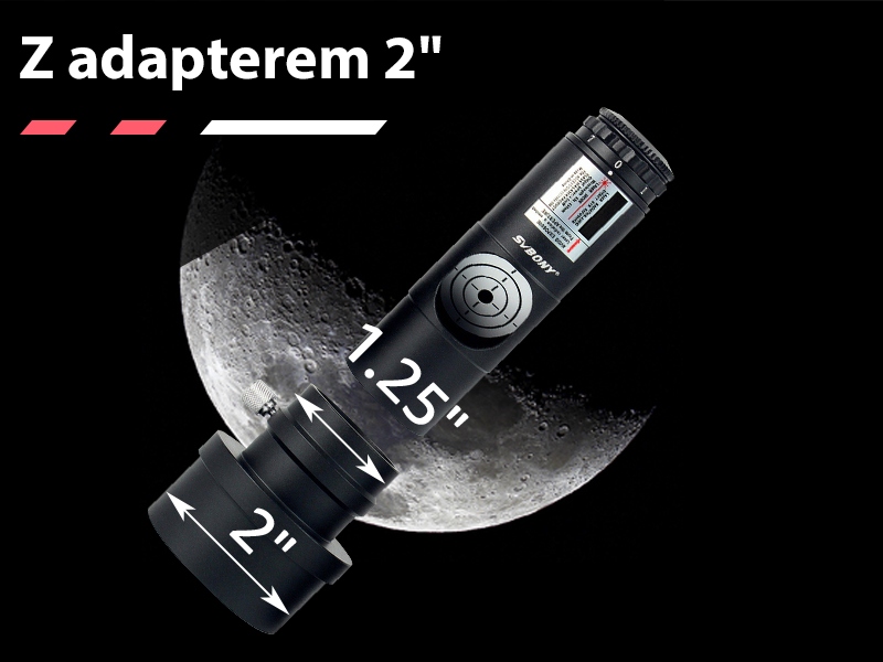 Коллиматор телескопа Svbony представляет собой как коллиматор 1,25 дюйма, так и коллиматор 2 дюйма. Поскольку этот коллиматор поставляется со съемным 2-дюймовым адаптером, он позволяет подключать телескопы-рефлекторы 1,25 и 2 дюйма для получения более качественных изображений с вашего телескопа.