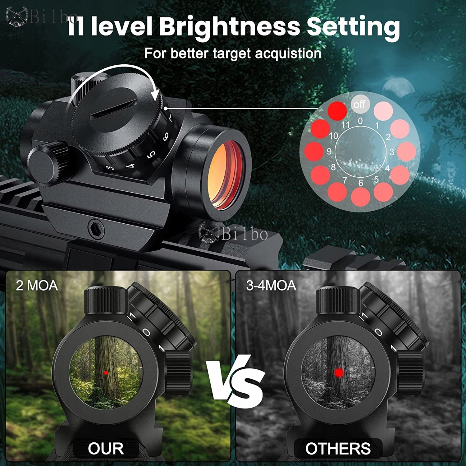 【Надежность】 Линзы с полным покрытием увеличивают светопроницаемость в условиях низкой освещенности. Неограниченное удаление выходного зрачка позволяет быстро обнаружить цель. 11 настроек яркости красных точек обеспечивают оптимальную видимость при любых условиях освещения, позволяя стрелкам регулировать интенсивность точек в зависимости от ситуации.