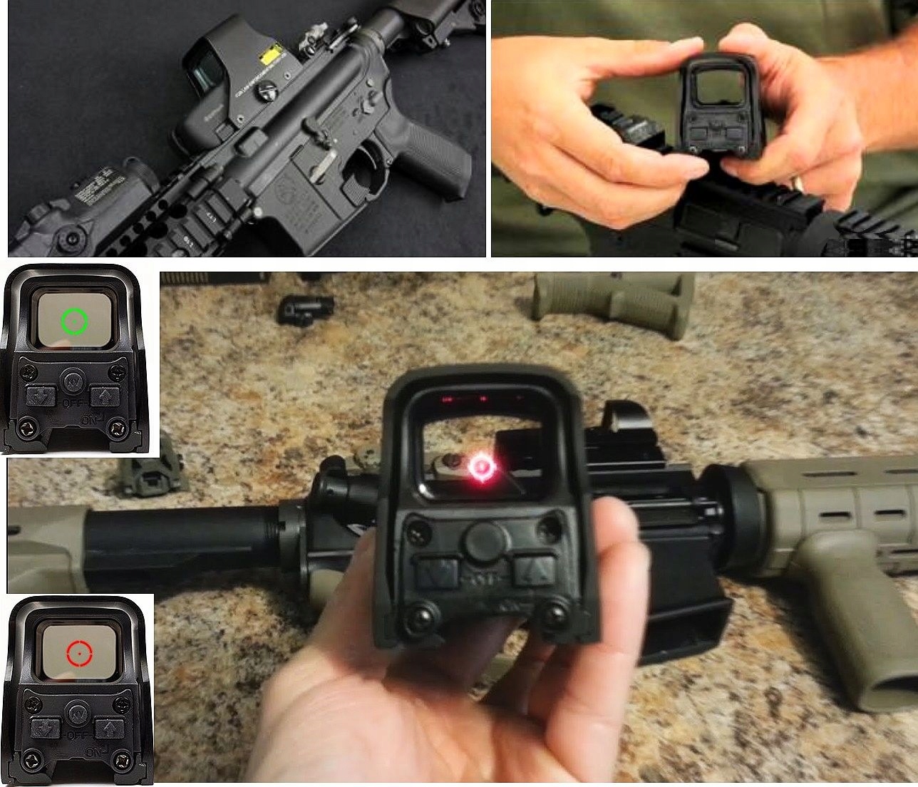 - Крест: красный и зеленый - голография с 5-ступенчатой регулировкой яркости