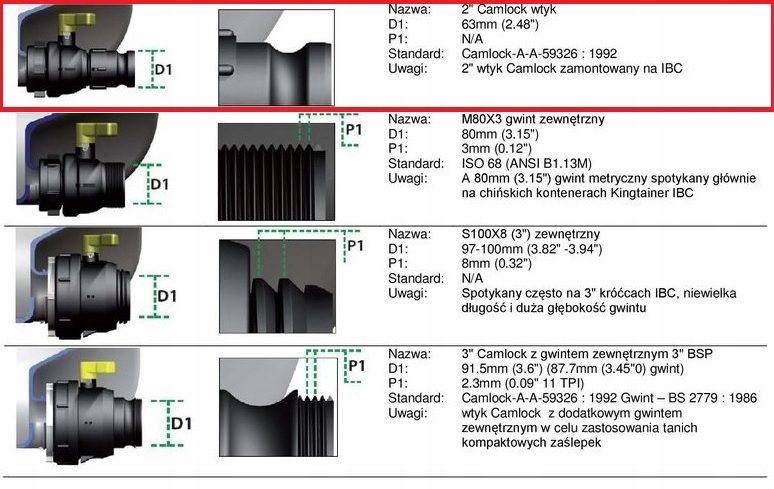 - Разъем Camlock: тип C (2 дюйма)