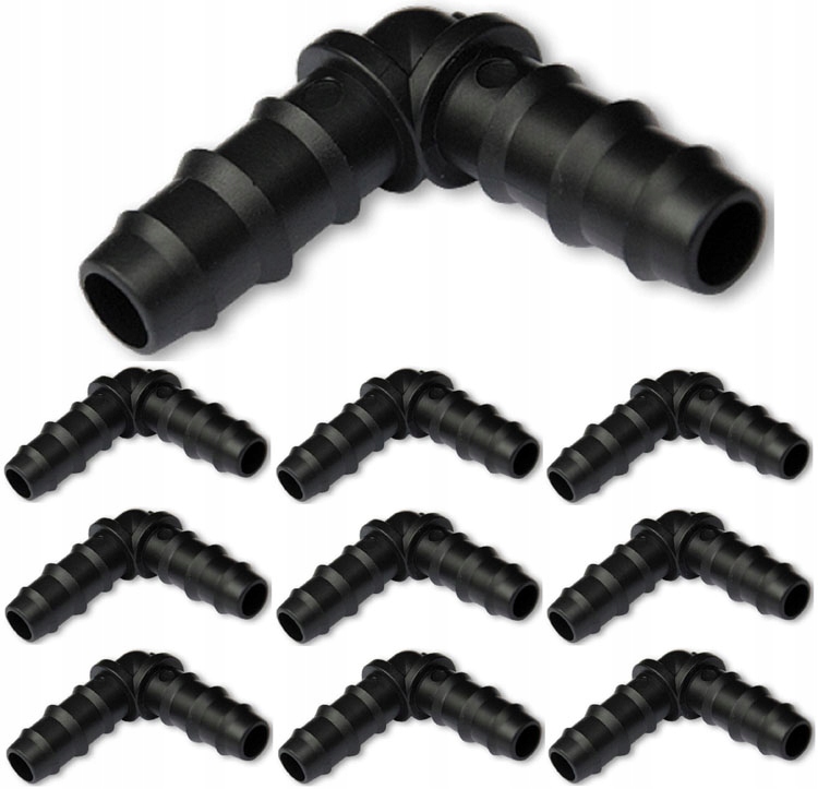 - Соединитель - коленчатый, прессованный, для подключения капельной линии к шлангу диаметром 16 мм.