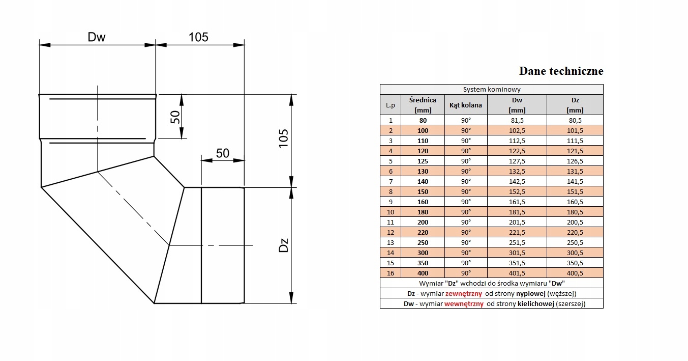 Коліно з нержавіючої сталі 90st Fi 200 Димохід KWAS