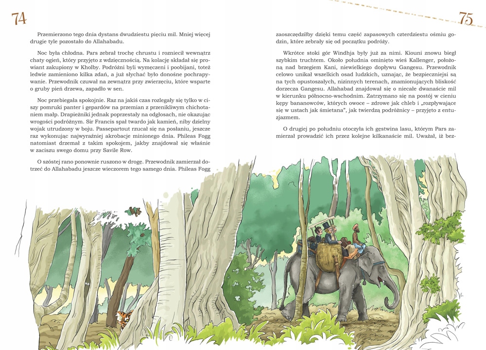 Вокруг света за 80 дней Жюля Верна — классика литературы. Книга находится в списке чтения, поэтому неудивительно, что в Польше так много изданий. Это приключенческий роман, в котором главную роль играют путешествия. Разнообразные его формы могут удивить читателя — поезда, лодки и даже слоны придают кругосветной экспедиции множество оттенков. Поскольку на дворе конец 19 века, герой не может путешествовать другим способом, что тоже довольно интересно в этой книге - показано, как люди, собиравшиеся в далекие страны, передвигались в прошлом и сколько длилось их путешествие (.. .) Роман насыщен действием, в удивительных сценах нет недостатка. Всегда что-то происходит. Читателю не скучно ни на минуту. Рассказ читается быстро. В нем много слов, которые юный читатель может не понять, поэтому они пояснены в сносках. Все это дополнено красочными иллюстрациями Николая Камлера (...) Грег издал ее очень хорошо, книга с иллюстрациями радует глаз. Недостатки стоит компенсировать.