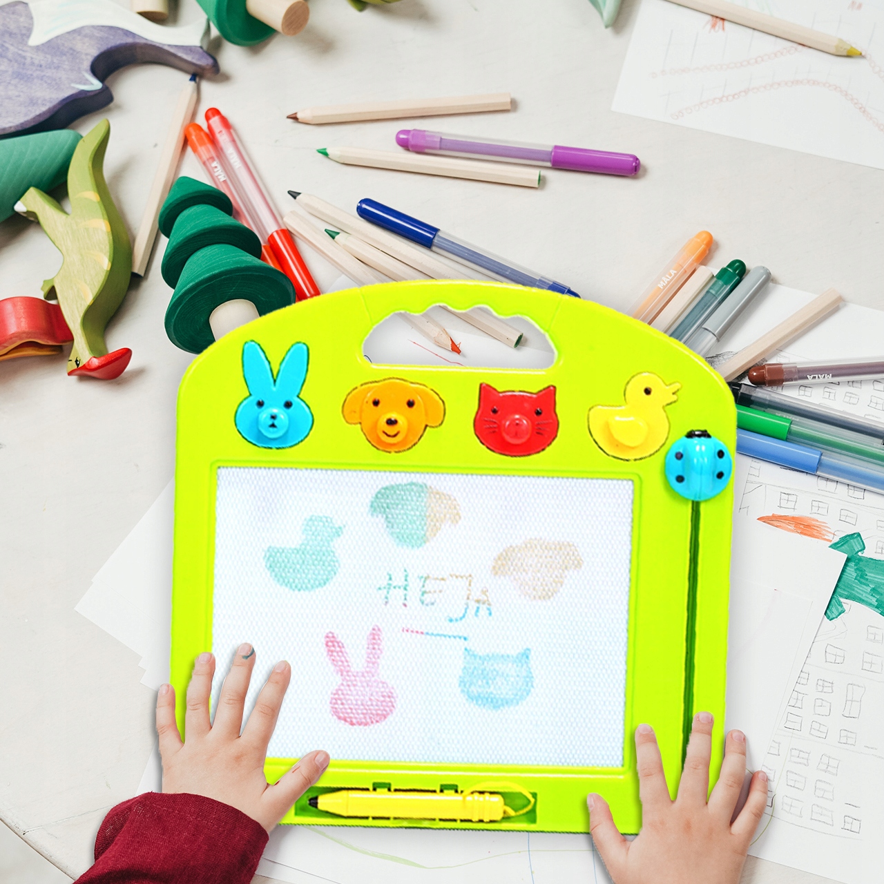 В альбом можно вместить бесчисленное количество изображений — просто переместите специальный ползунок, и рисунок исчезнет, и вы сможете приступить к созданию нового. Блокнот оснащен четырьмя магнитами разной формы, что позволит еще больше разнообразить веселье.