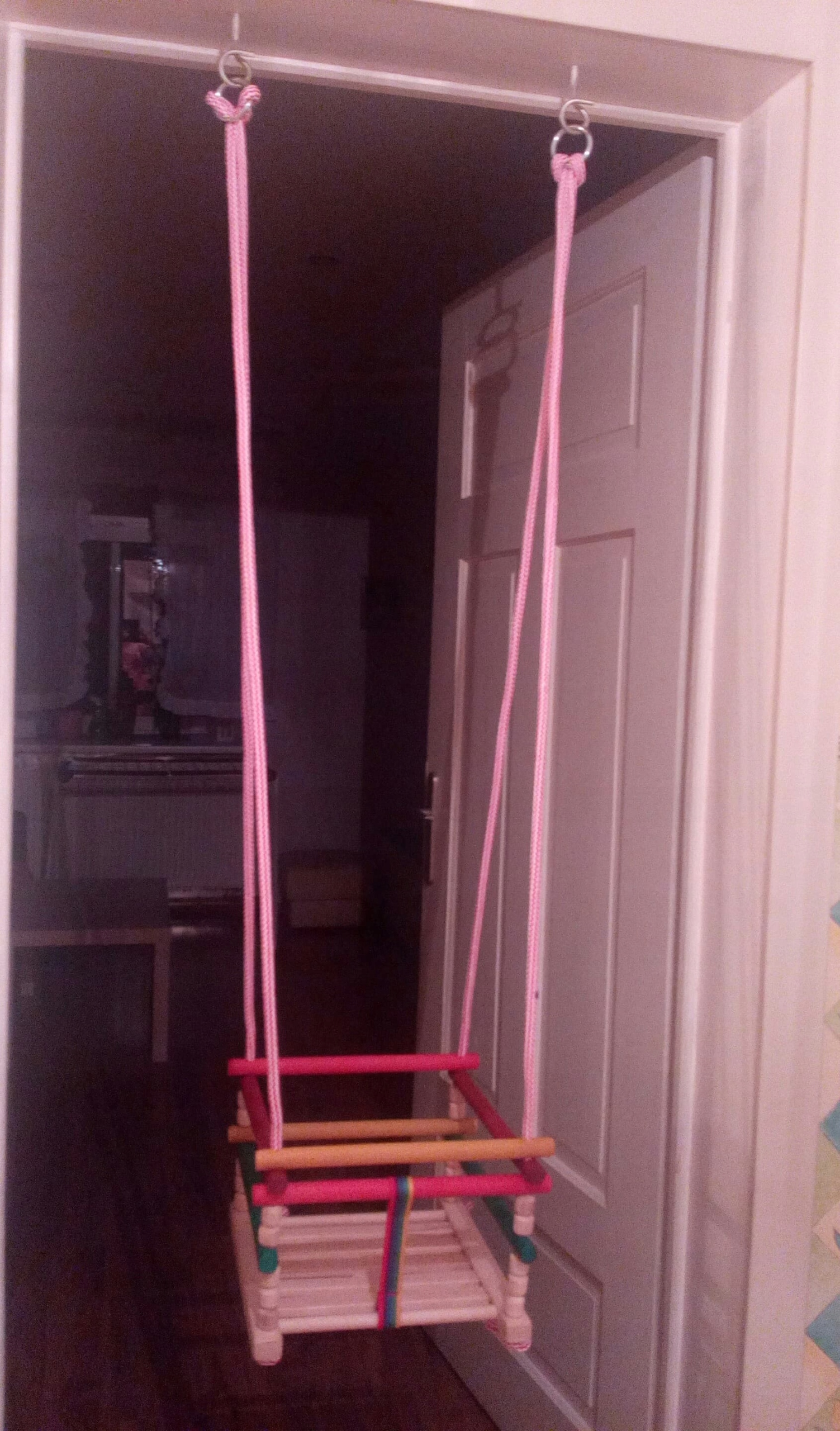 Комплект со сплошной дюбелем создан для тех, кто не хочет делать отверстия в дверной коробке для установки крючка, удерживающего качели. Вы можете быстро демонтировать штангу в любой момент, когда качели не используются.