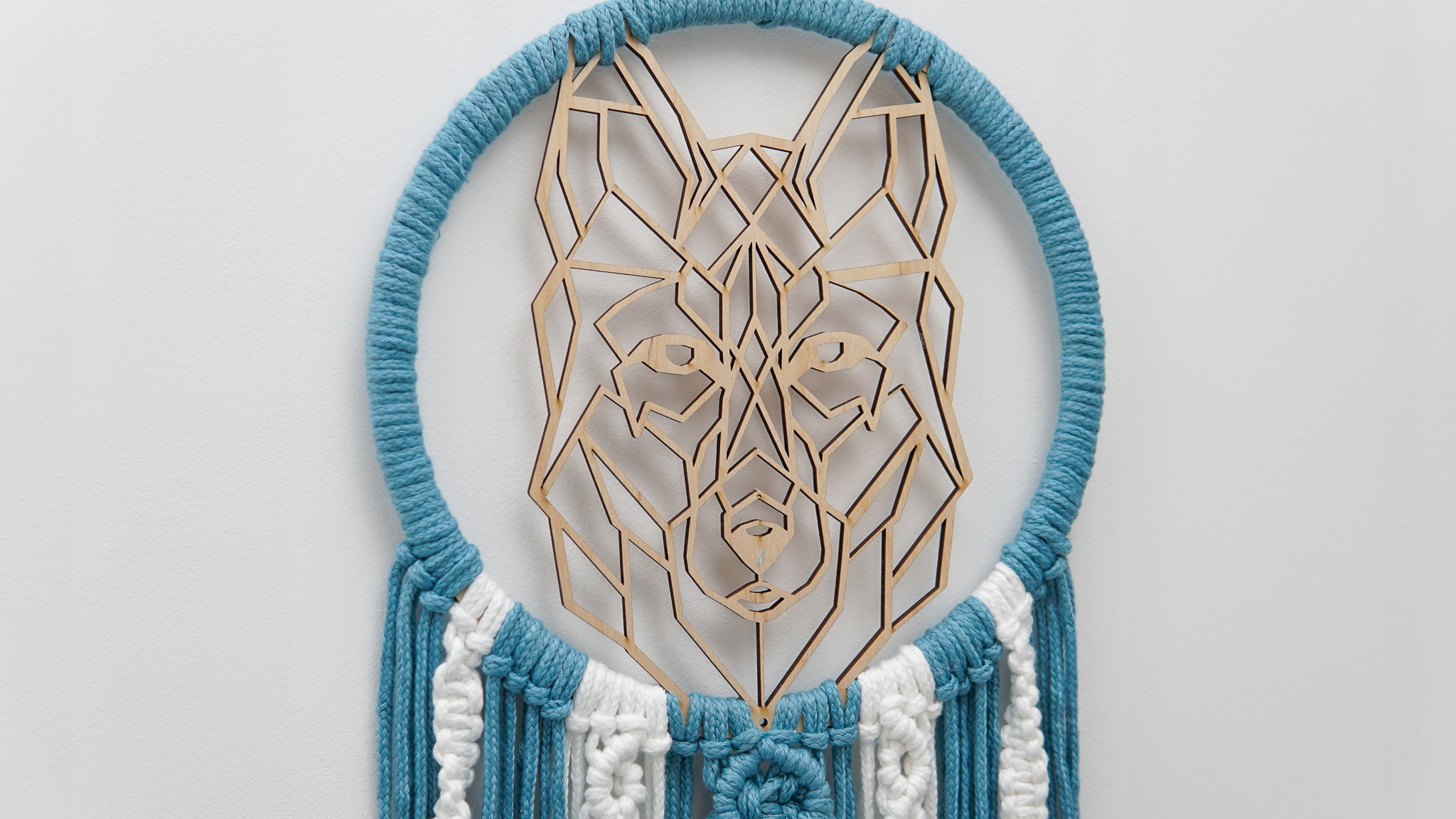 Круглый ободок, основание для ловца снов/макраме диаметром 39 см с эффектной геометрической головой волка внутри. Изготовлен из высококачественной фанеры твердых пород (береза/тополь), толщиной около 3 мм.