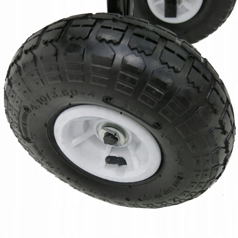 Прочная стальная конструкция с прочными резиновыми надувными колесами.
