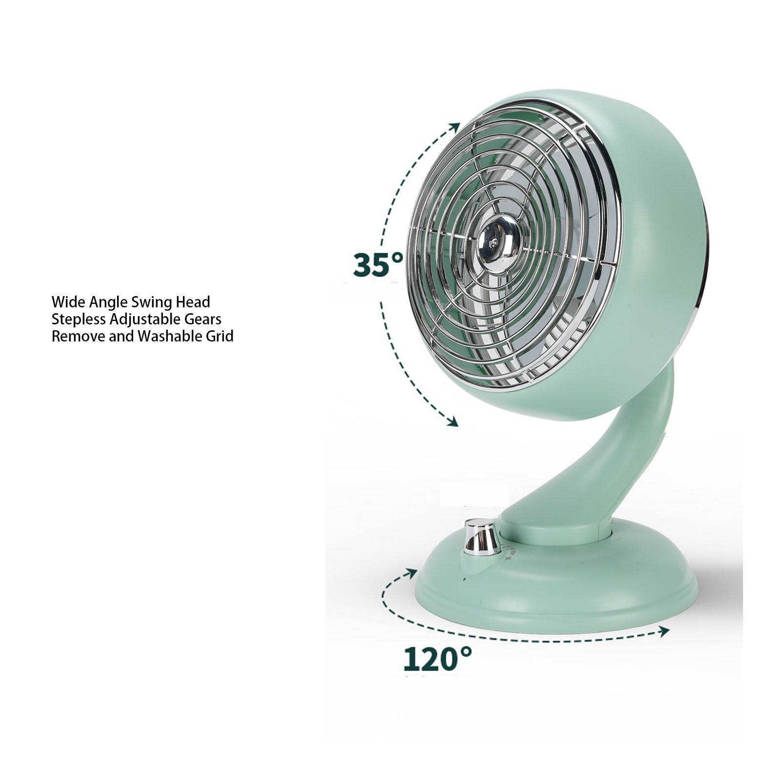4. Высокая производительность: этот личный вентилятор обеспечивает прохладный и освежающий воздушный поток по всему пространству, все обернутые в очаровательный винтаж, что улучшает атмосферу вашей среды.