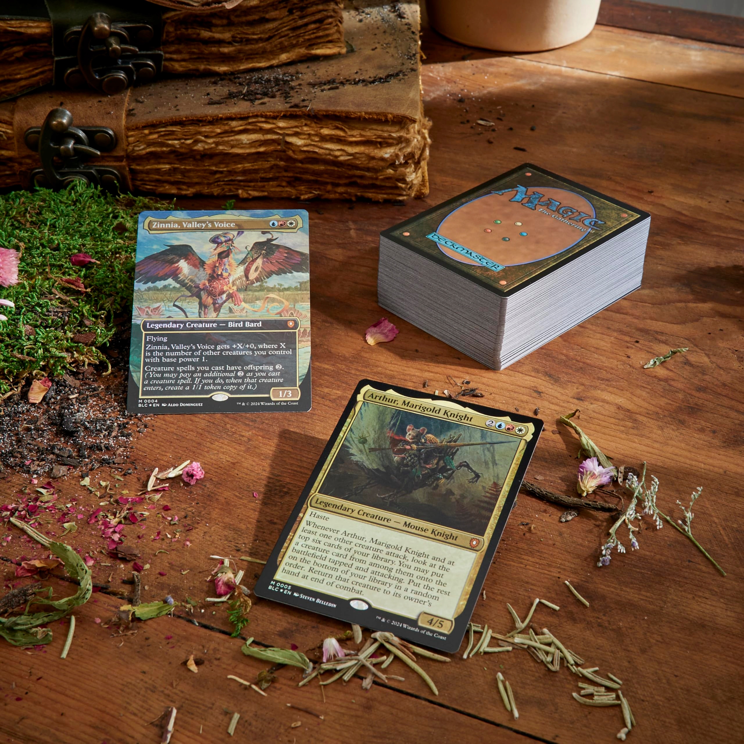 СОБИРАЙТЕ КАРТЫ ОСОБОГО ОБРАЩЕНИЯ. К каждой колоде также прилагается образец коллекционного бустера из 2 карт, содержащий 2 карты из набора «Цветущая нора», в том числе 1 редкую или мифическую редкую с альтернативной рамкой и как минимум 1