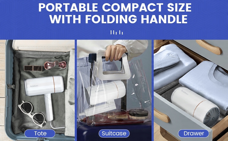 Эргономичный дизайн и складной отпариватель Этот отпариватель небольшого размера с эргономичным дизайном и складной ручкой легкий и удобный. можно легко носить с собой и хранить в сумке, чемодане, ящике. Идеально подходит для деловых поездок, отпуска, свадьбы или любого другого места, где вам нужно быстро, безопасно и бережно гладить и отпаривать деликатную одежду!