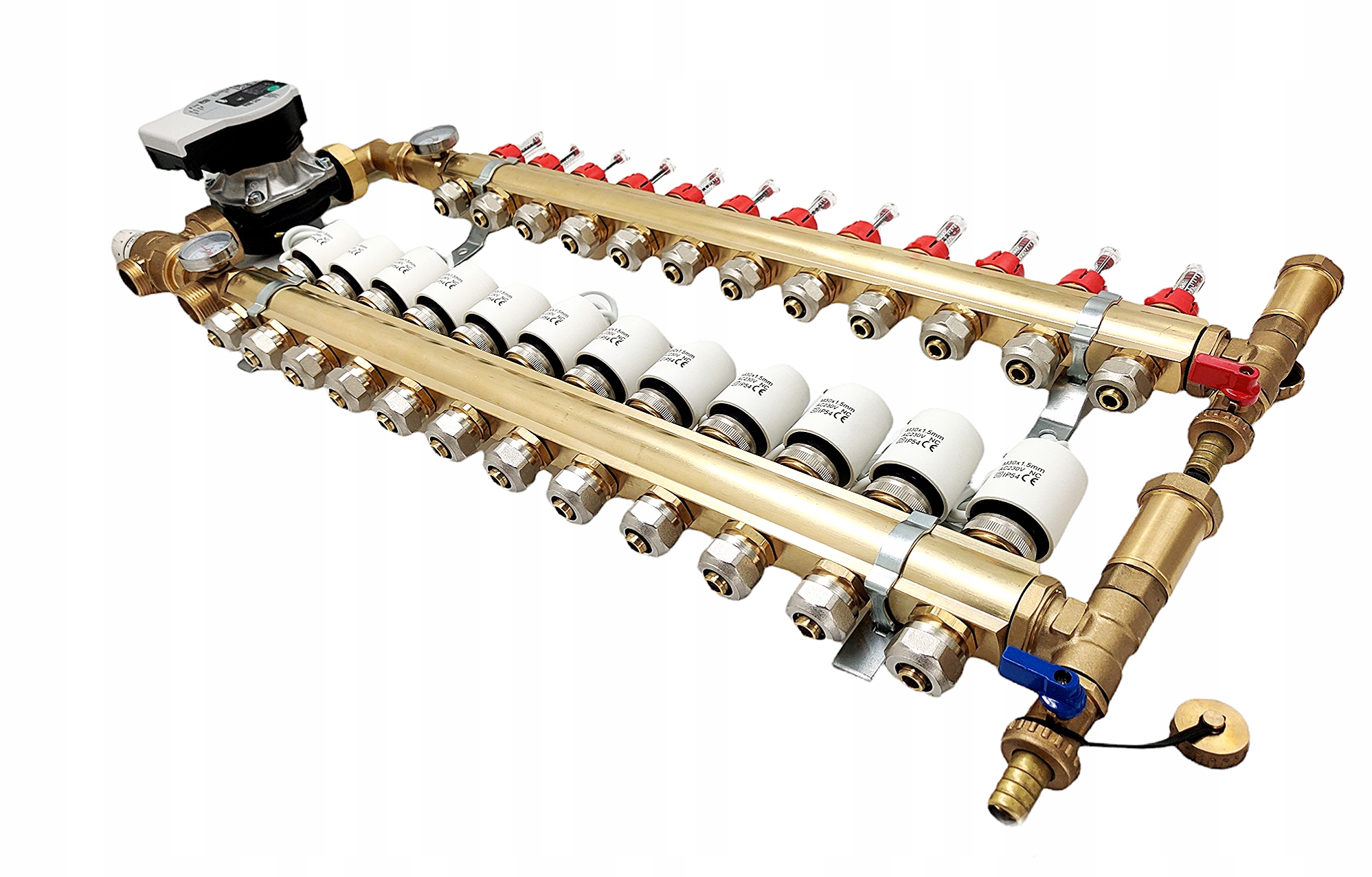 Вставка, также известная как термостатический клапан для теплого пола, используется на обратной распределительной балке. Этот клапан используется для ручного закрытия потока на данном участке. Вместо ручки также можно установить термоэлектронный привод, который в зависимости от используемых решений будет автоматически отключать нагрев в заданном контуре на основе термостата или с помощью нашего смартфона. Ручки на возвратной балке не используются для регулирования потока, поэтому регулировку следует производить при полностью открытых ручках. Почему это происходит? Хотя теоретически можно попытаться регулировать расход поворотом клапана на обратной балке, в случае ремонта, поломки или установки привода все настройки придется производить с нуля.