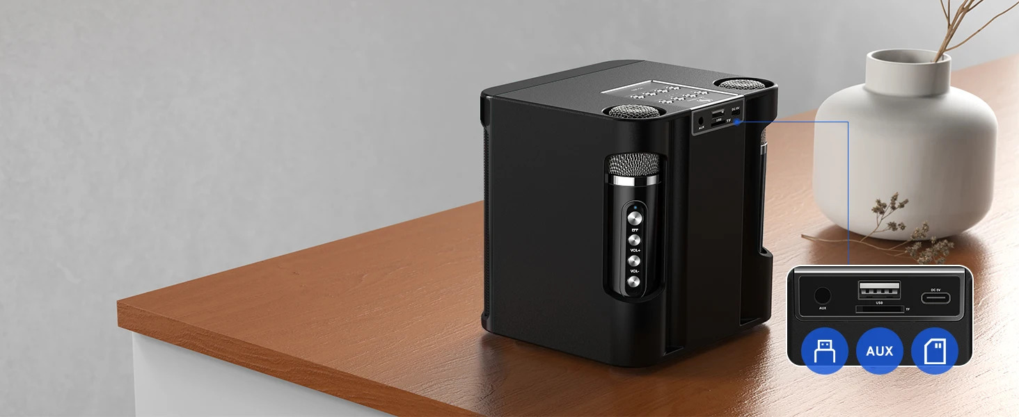 Караоке -машина с 2 беспроводными микрофонами сабвуфера Bluetooth