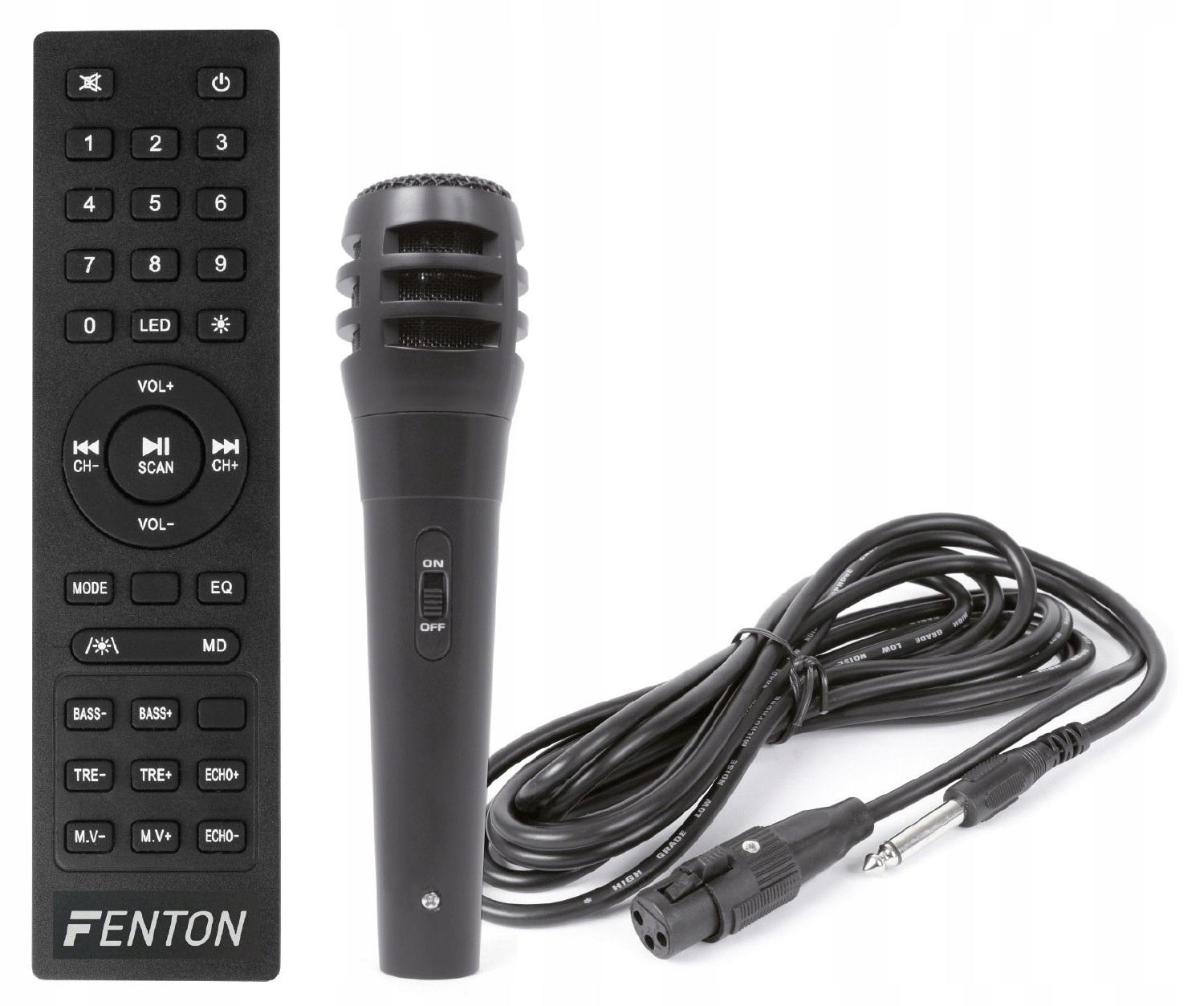 Мобильная акустика Fenton MDJ150 — универсальный проигрыватель, способный разнообразить многие вечеринки. Имеет большой выбор источников звука — USB и SD MP3-плеер, а также модуль Bluetooth и вход AUX. Большим удобством является входящий в комплект пульт дистанционного управления, а также проводной микрофон. Дополнительно у нас есть микрофонный вход и эффект эха. Встроенные светодиодные световые эффекты Derby будут радовать глаз и создавать незабываемую атмосферу вечеринки, куда бы мы ни взяли с собой наше устройство, а благодаря небольшим размерам и весу мы можем легко транспортировать его буквально туда, куда захотим начать вечеринку. Заряд аккумулятора позволит нам наслаждаться музыкой где угодно.