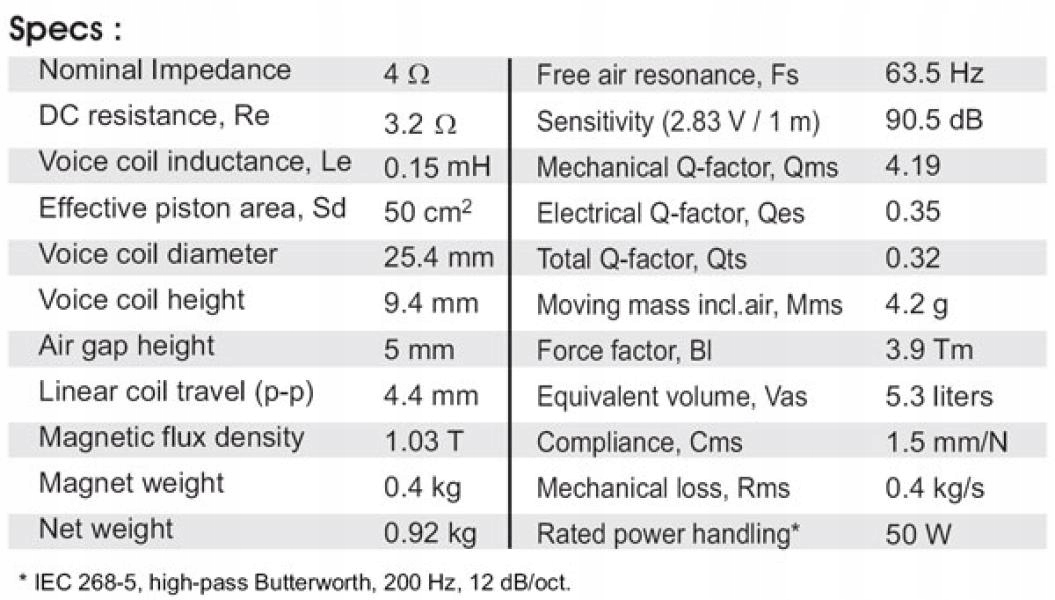 - Звуковая катушка CCAW для уменьшения движущейся массы.