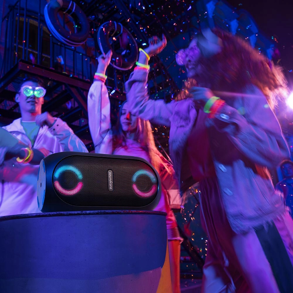 Создайте уникальную атмосферу на каждой вечеринке с помощью динамика Soundcore Rave PartyCast.