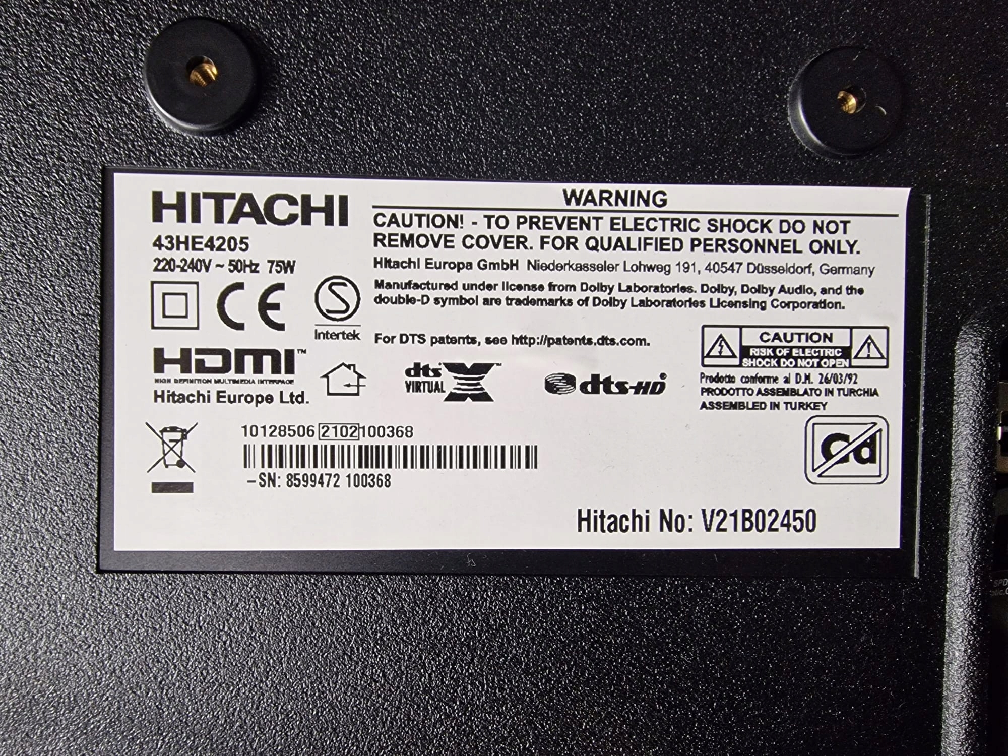 Модель телевизора: HITACHI 43HE4205