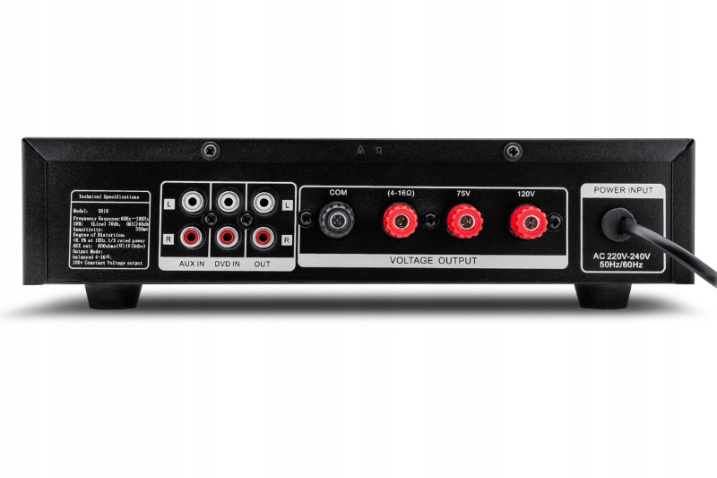 Усилитель позволяет подключать громкоговорители с сопротивлением 4–16 Ом или в системах 75 В и 120 В