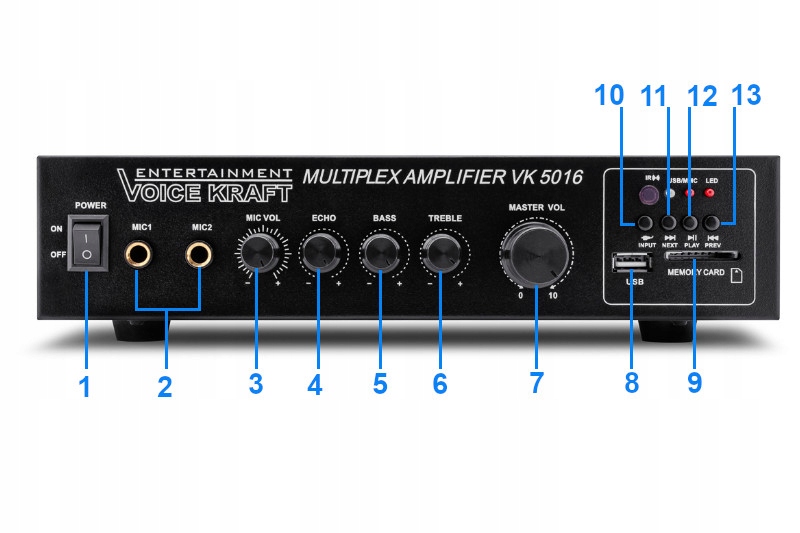 .Благодаря двум встроенным микрофонным входам и отдельным регуляторам громкости и эха для этих источников.