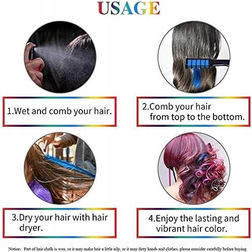 ЦВЕТНЫЕ ОСОБЕННОСТИ Расческа, моющийся мел для волос, 6 цветов