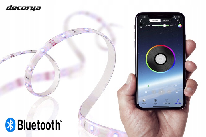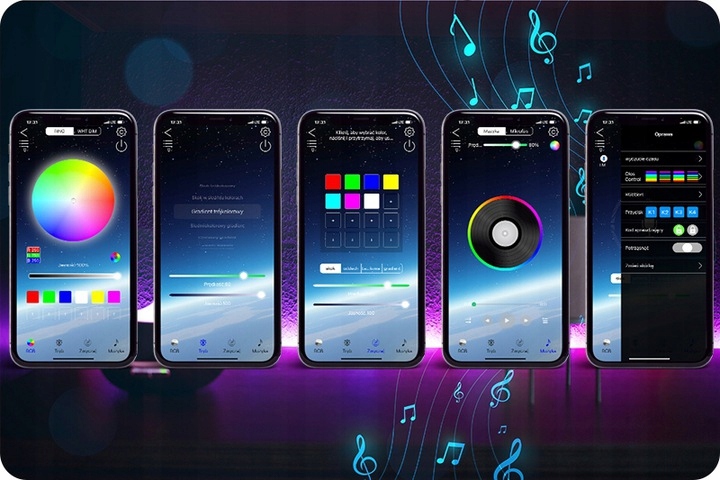 Управление лентой осуществляется через Bluetooth с помощью приложения на телефоне. Вы можете управлять освещением в различных сочетаниях яркости и насыщенности, а также холодным белым.