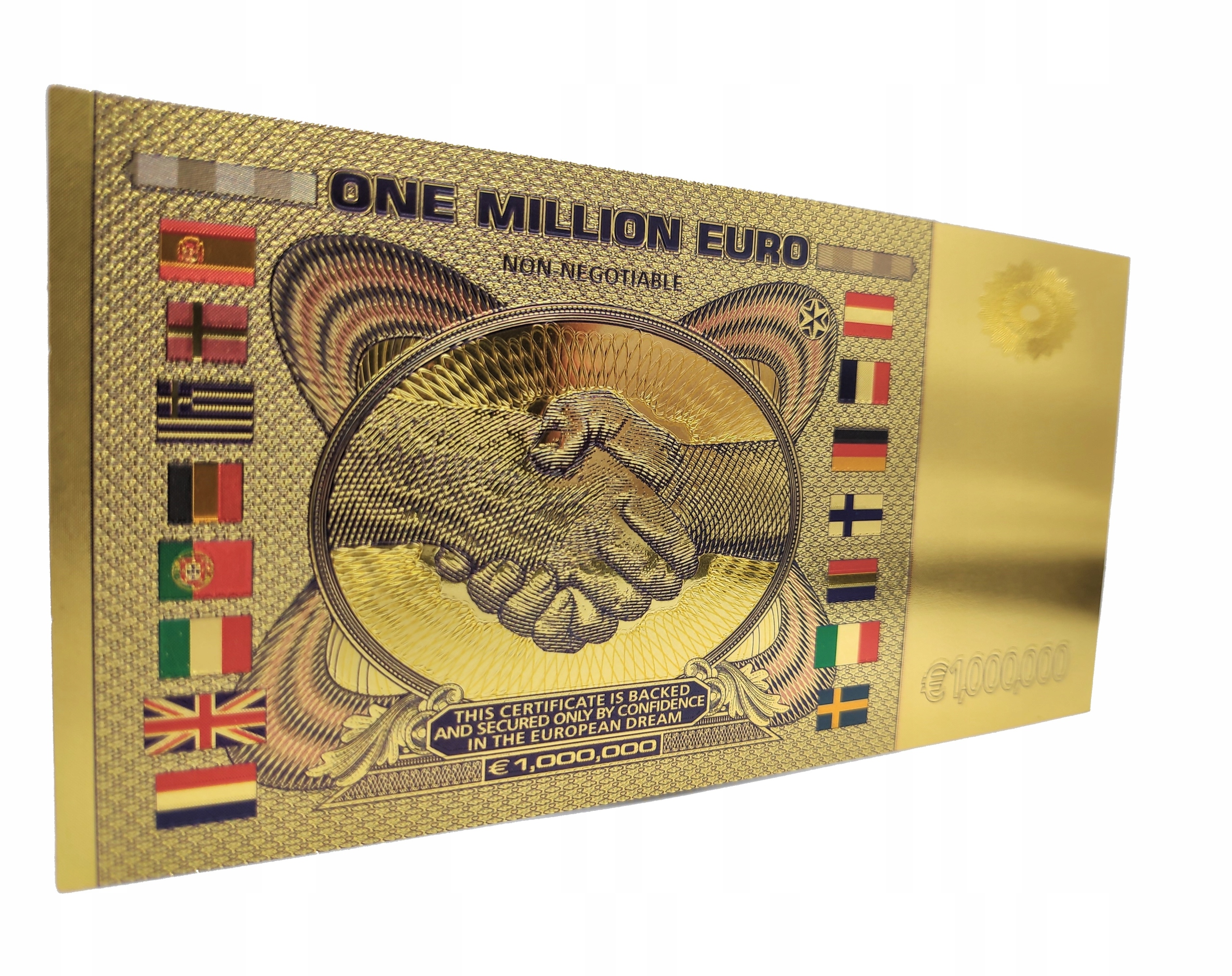 ПОЗОЛОЧЕННАЯ БАНКНОТА ОДИН МИЛЛИОН ЕВРО, ЦВЕТНАЯ ВЕРСИЯ