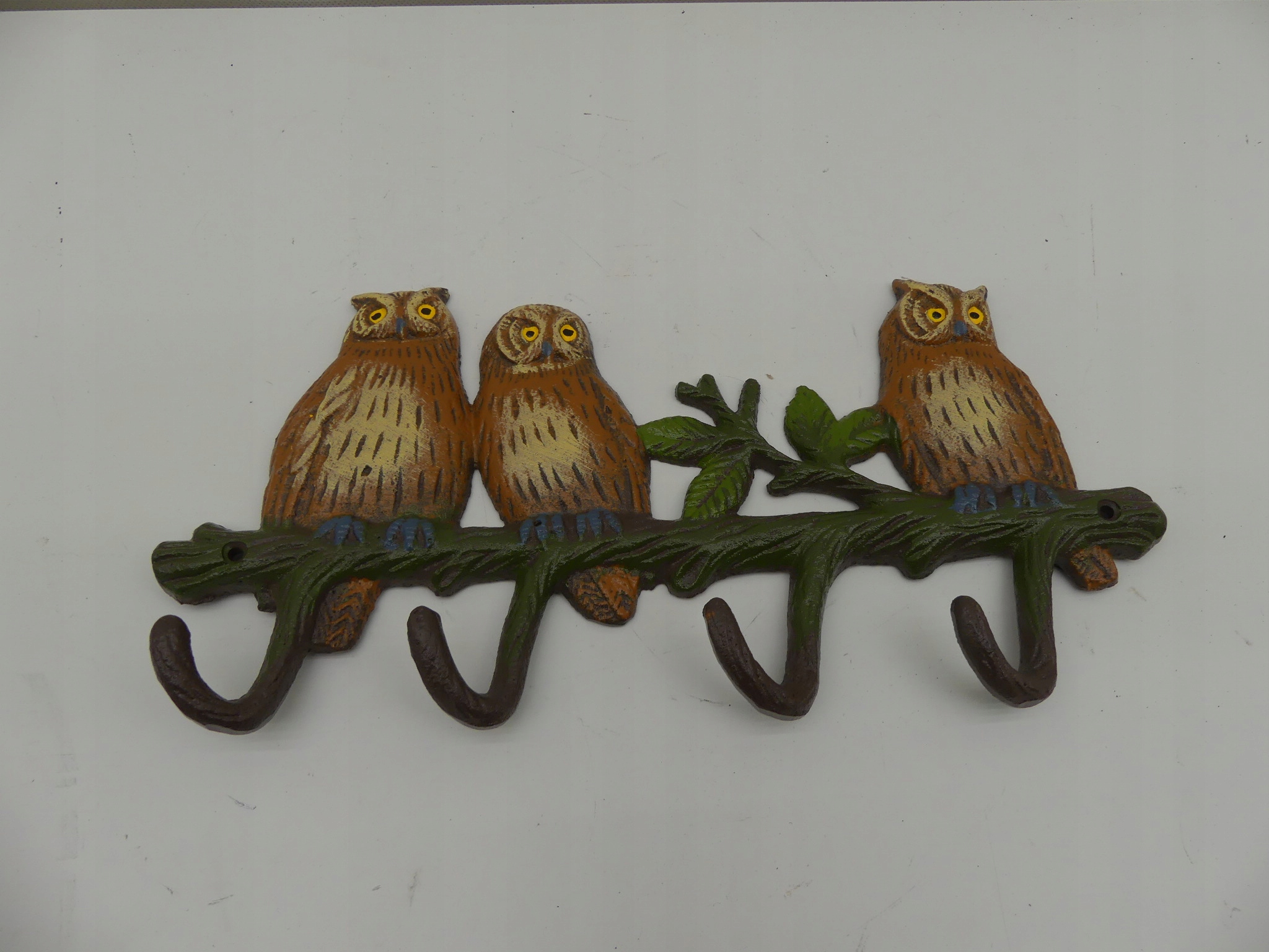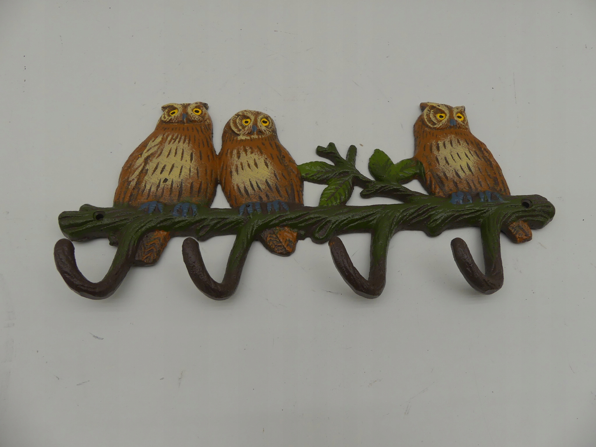 ЦВЕТНАЯ ЧУГУННАЯ ВЕШАЛКА С СОВАМИ СОВЫ